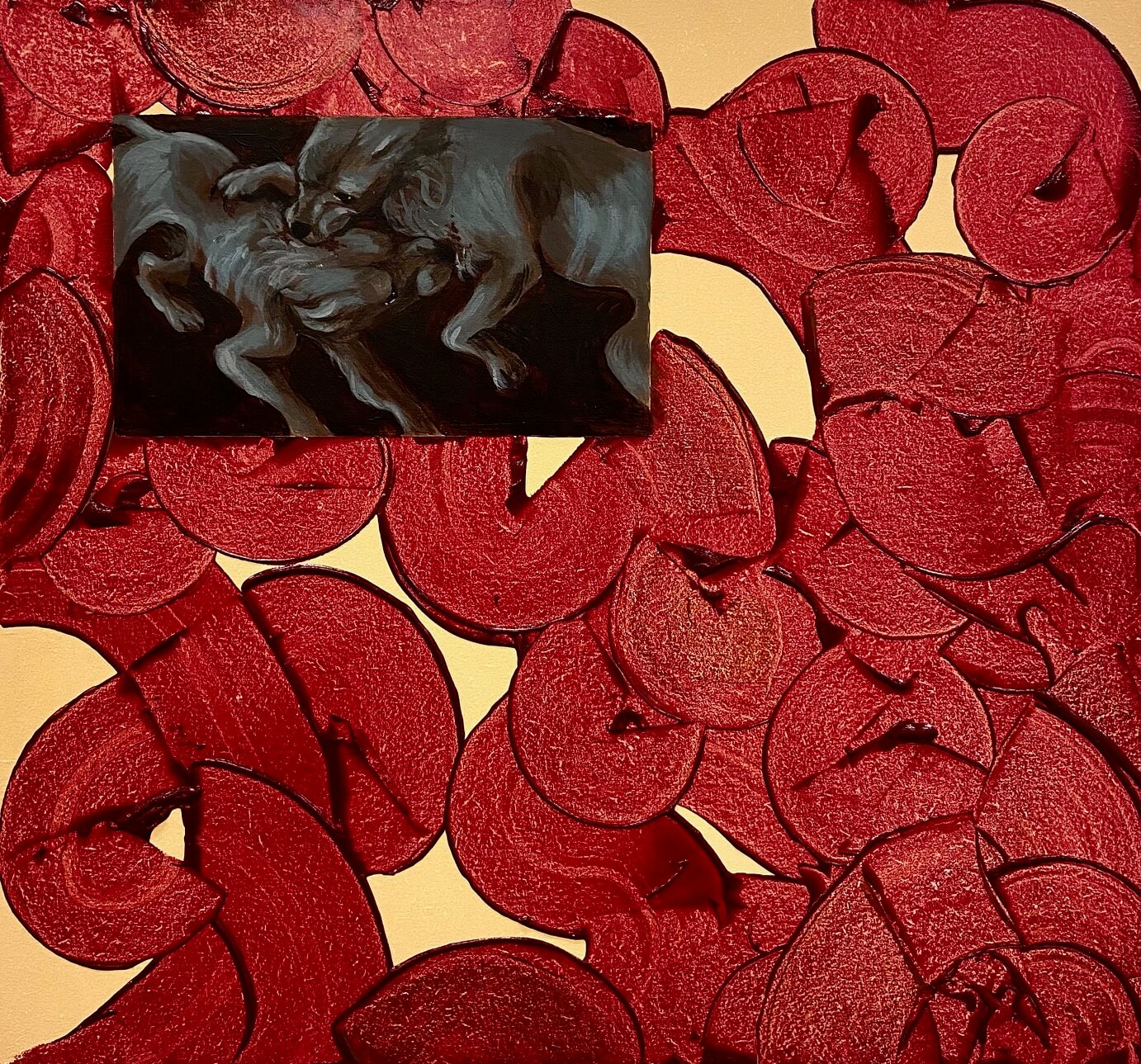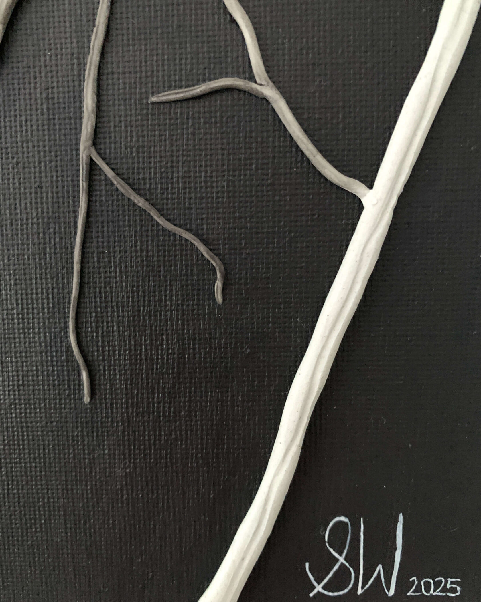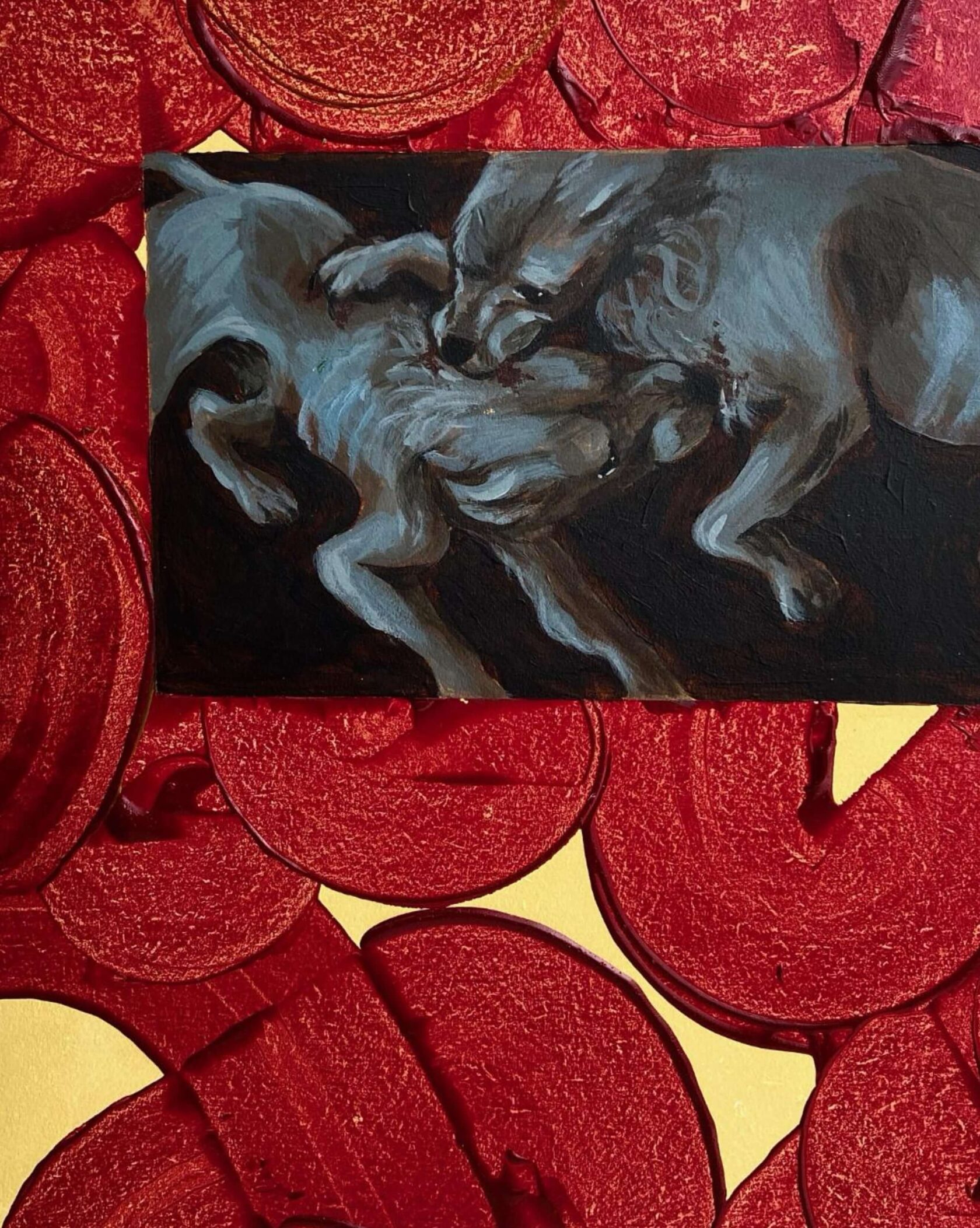 Continuing her experimentation, Stephanie delved into mixed media, crafting miniatures and clay sculptures, eventually integrating clay and paint onto canvas to create three-dimensional depth, symbolising the simultaneous harmony and conflict between humans and nature