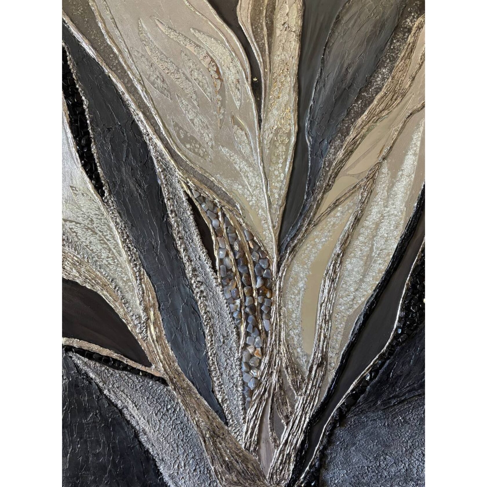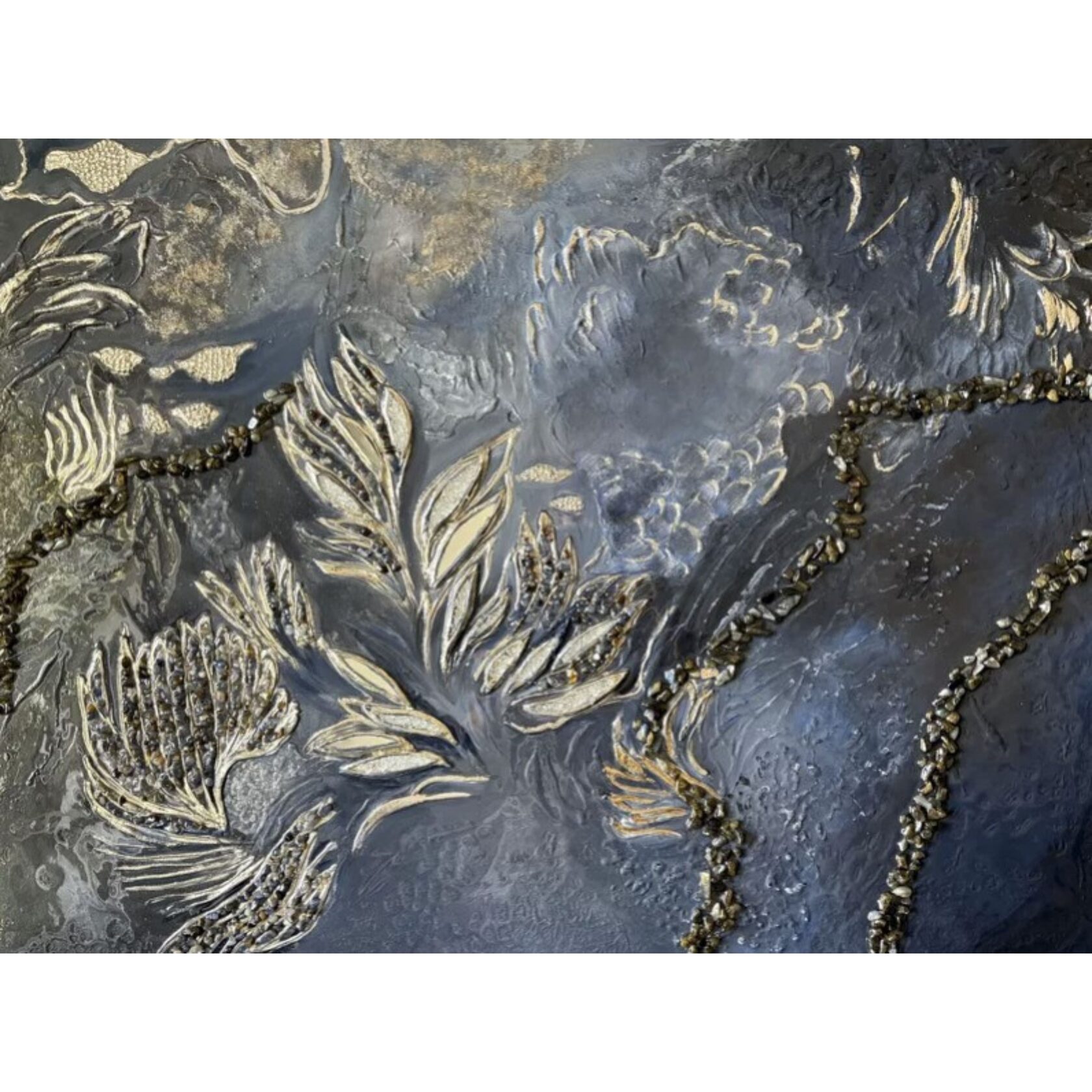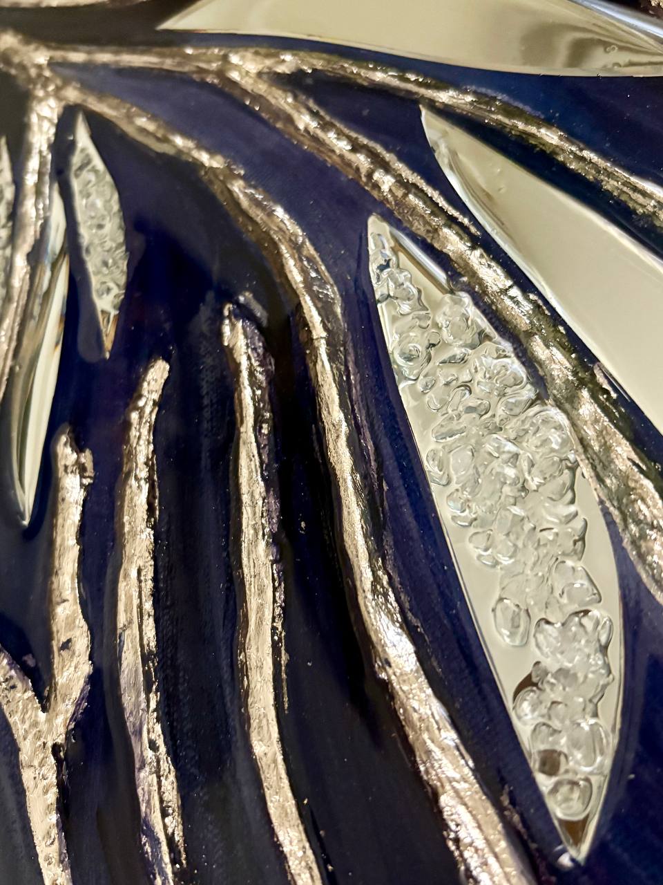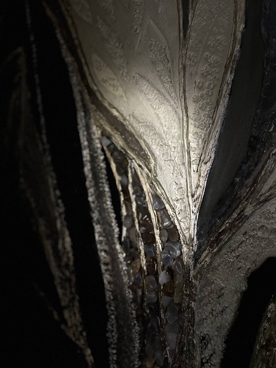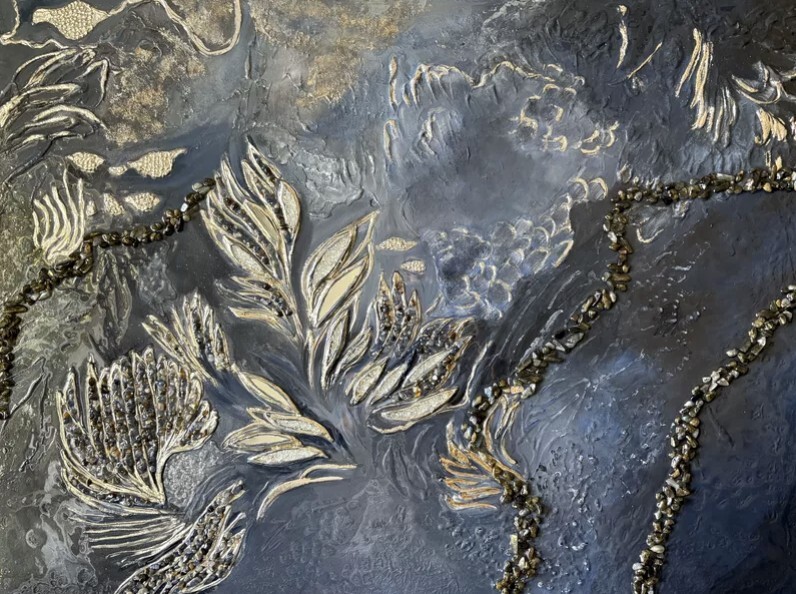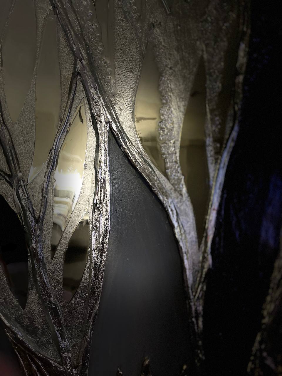 Texture paste, mosaic, acrylic paints, mirror gold leaf, natural mirrors, pure quartz, agate, epoxy resin