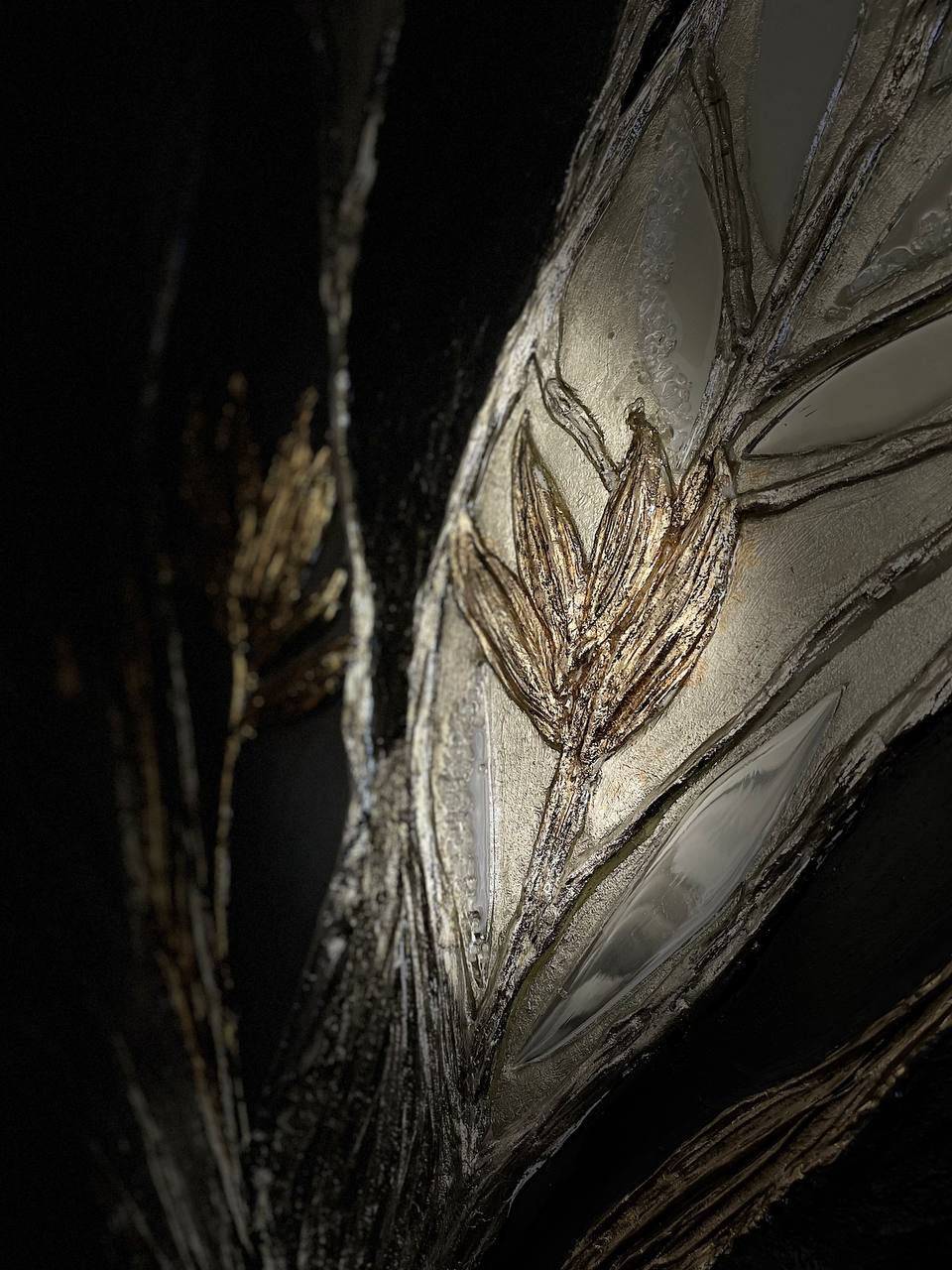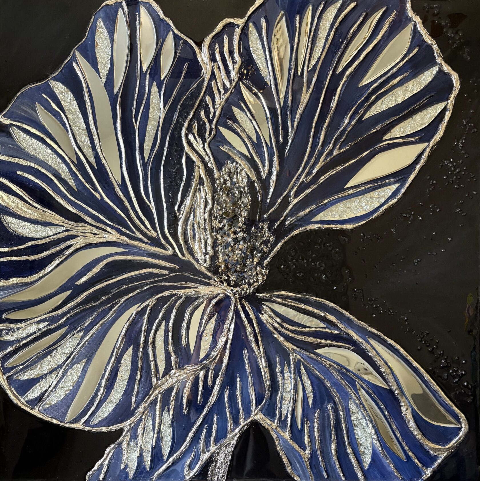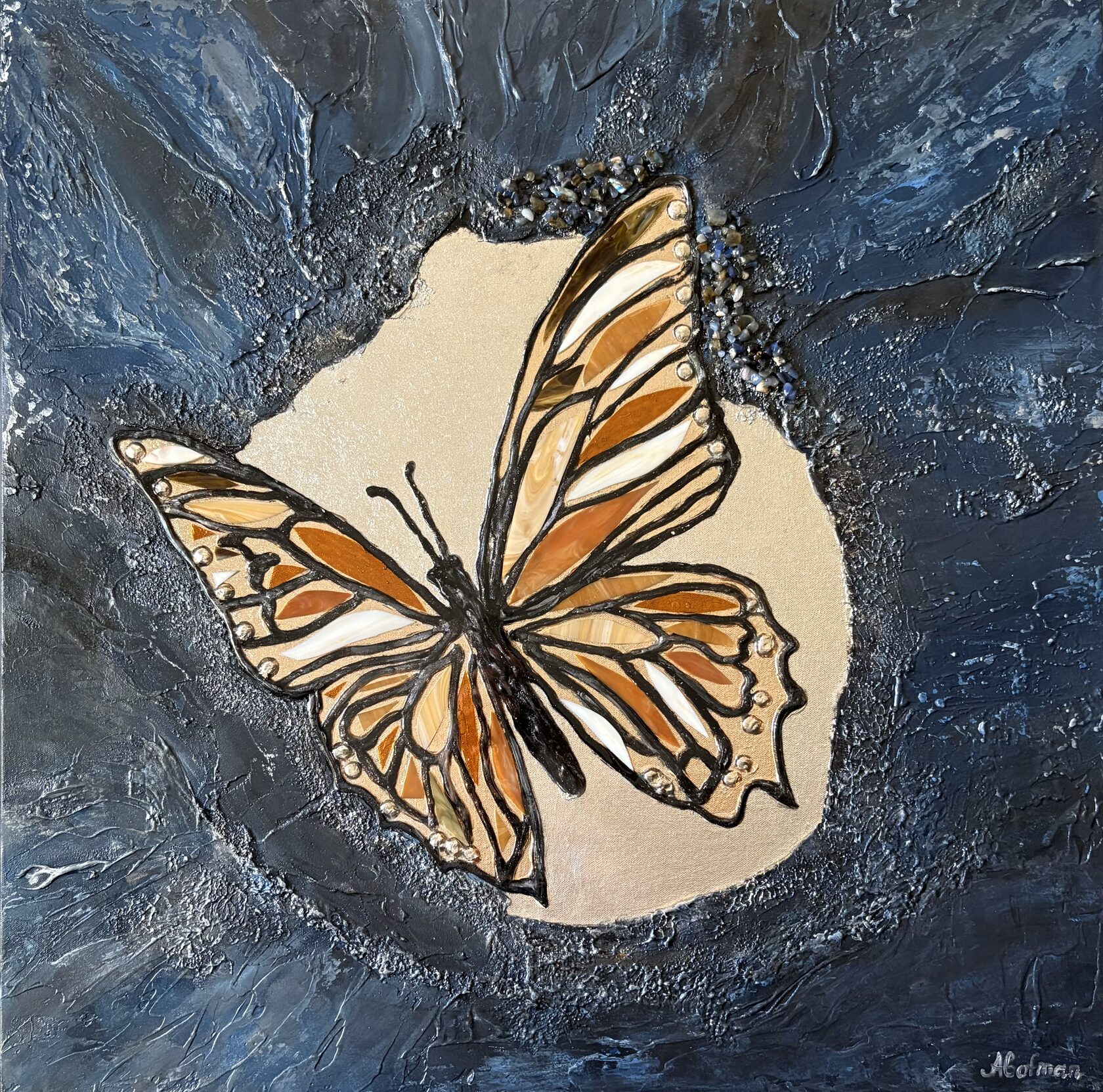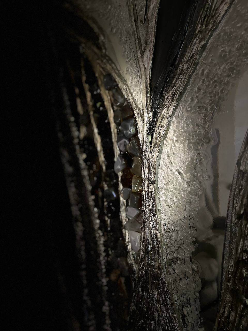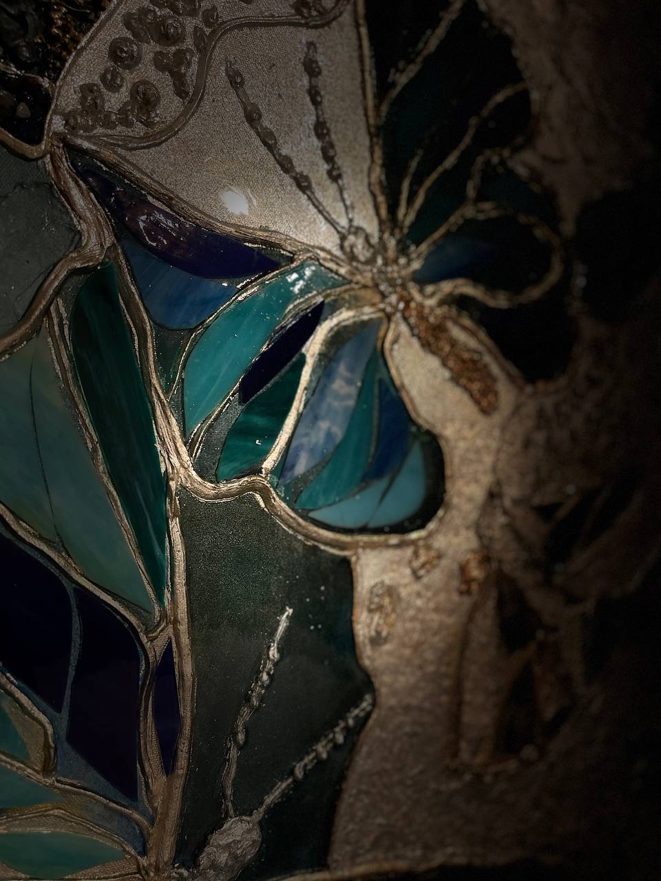 Texture paste, mosaic, acrylic paints, mirror gold leaf, natural mirrors, pure quartz, agate, epoxy resin