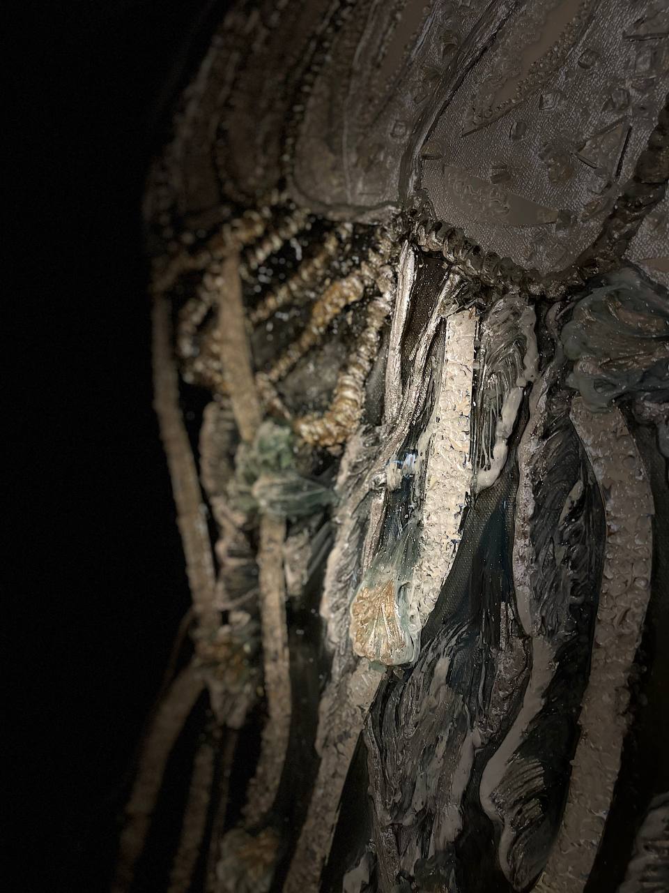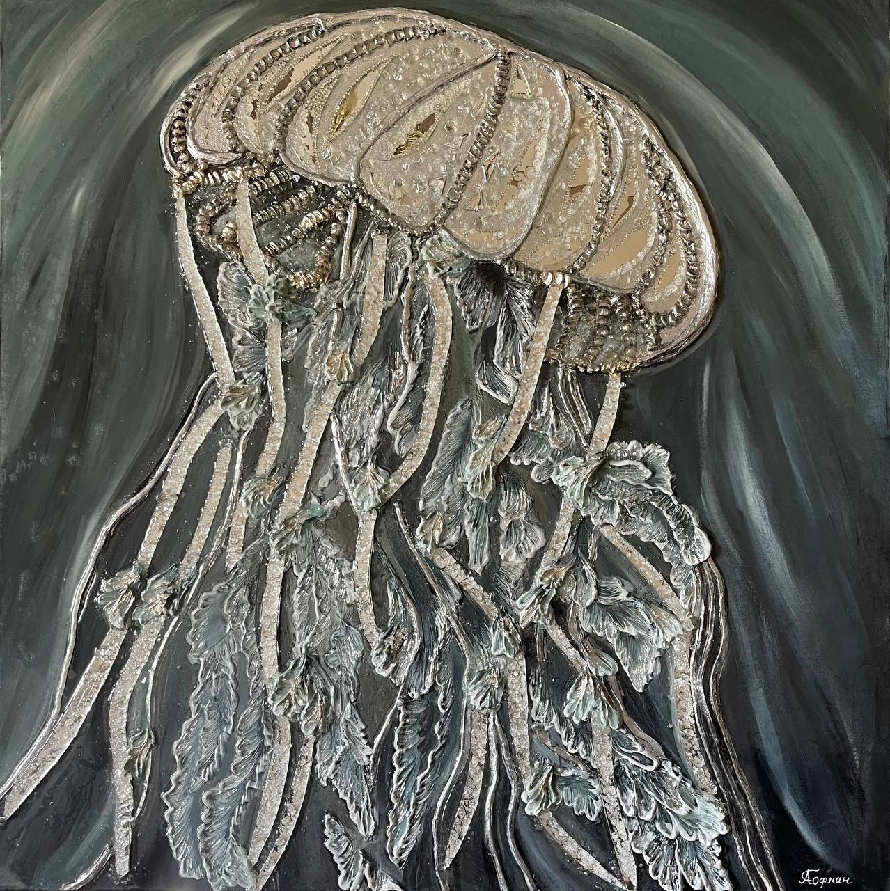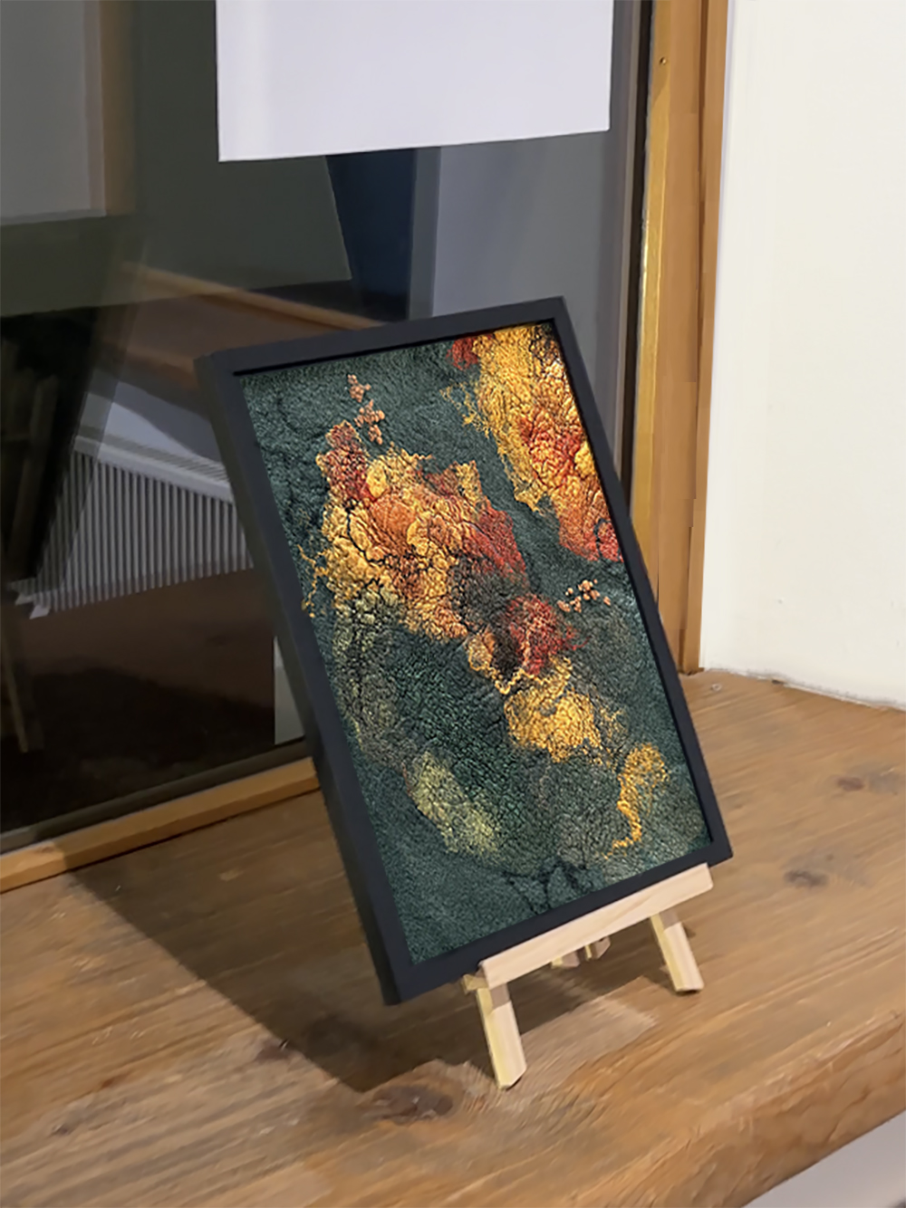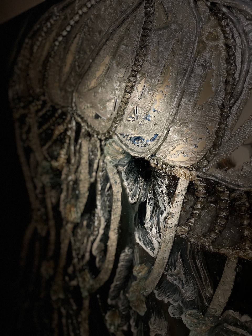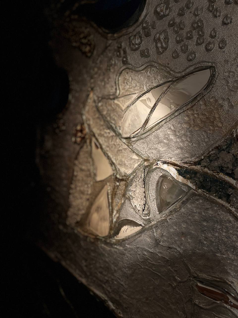 Texture paste, mosaic, acrylic paints, mirror gold leaf, natural mirrors, pure quartz, agate, epoxy resin