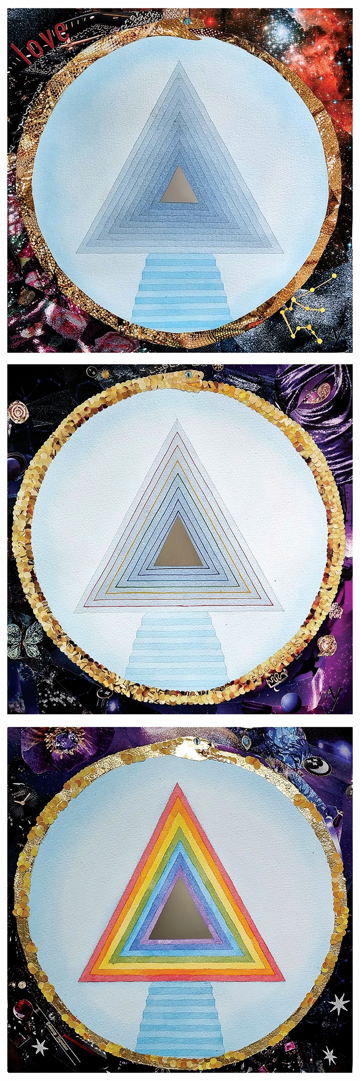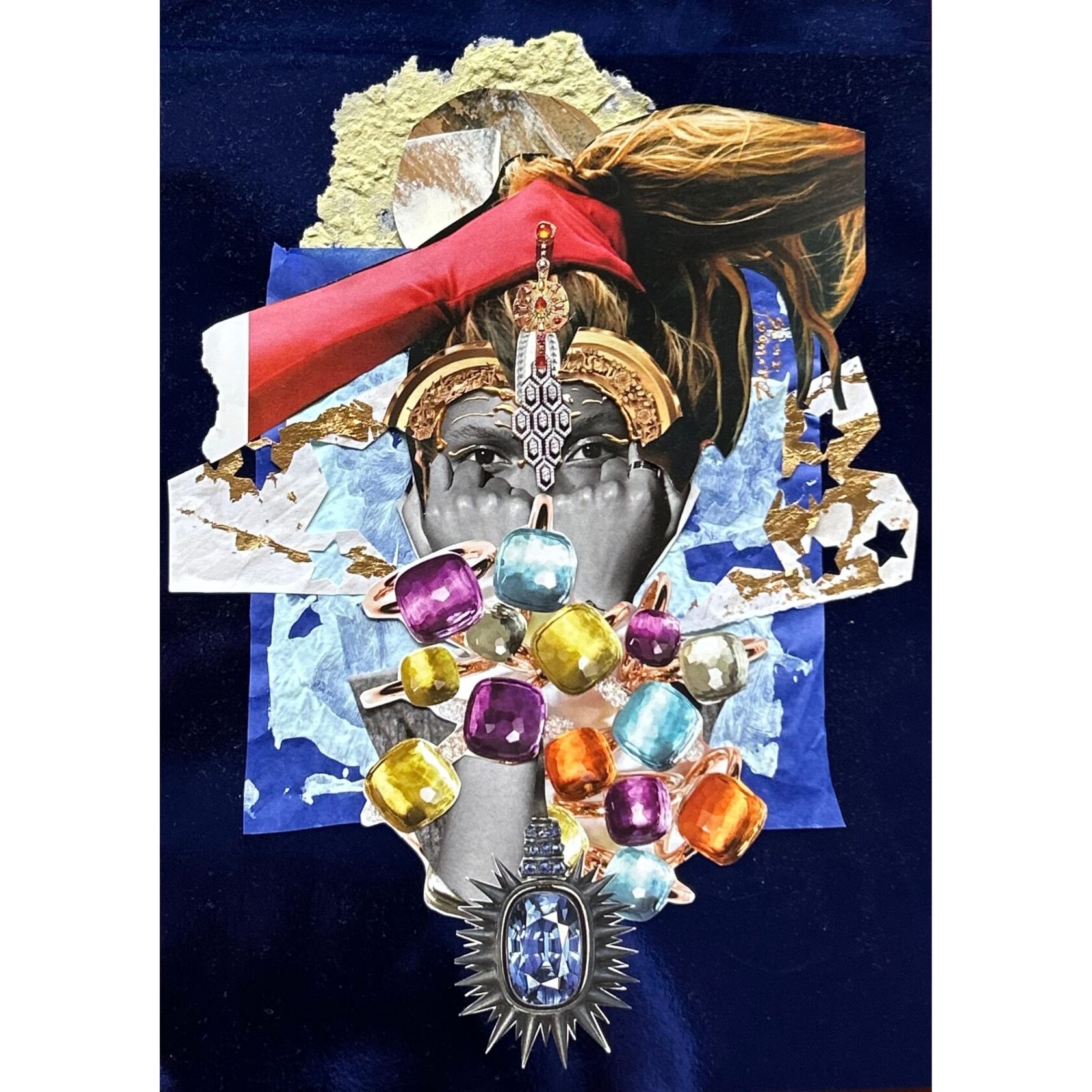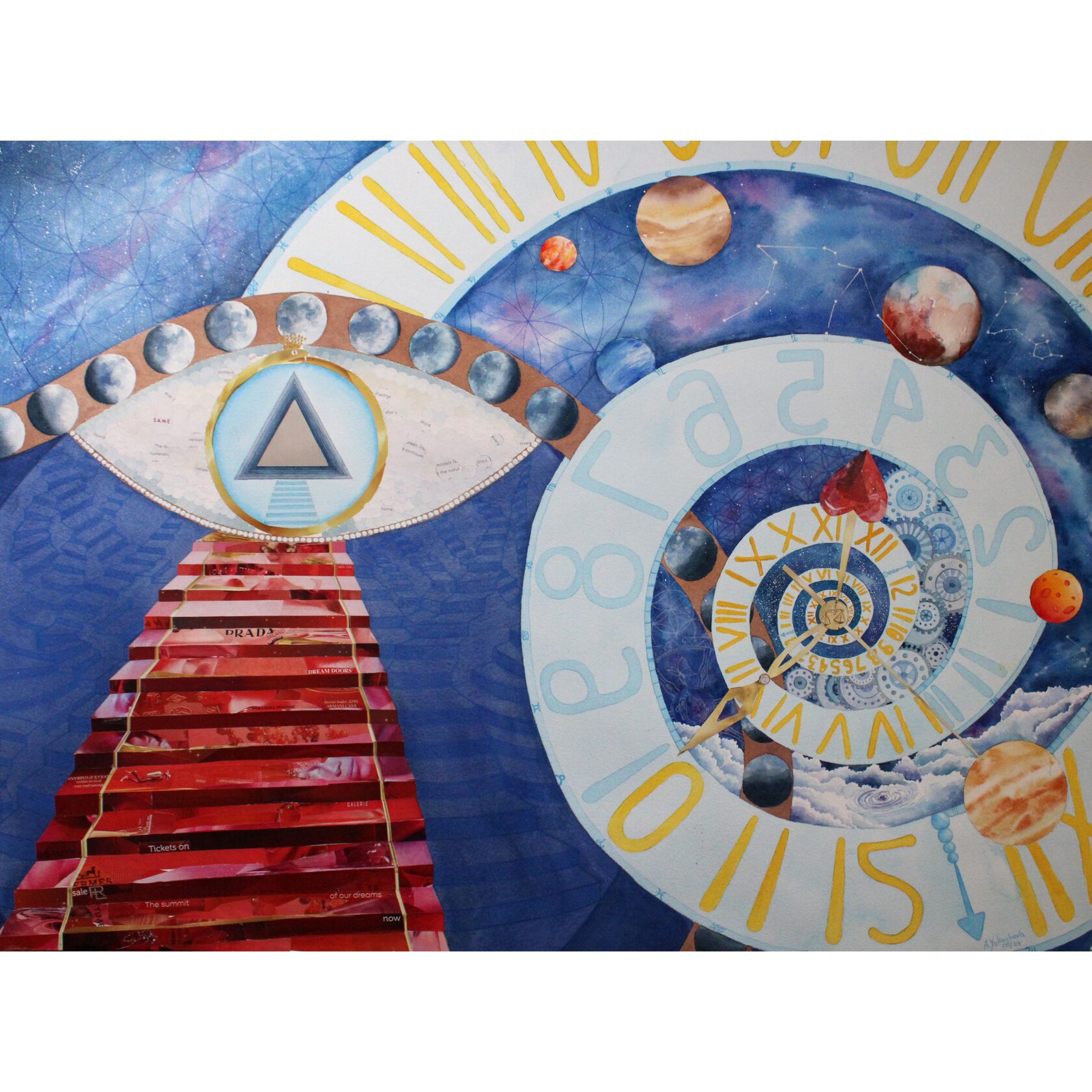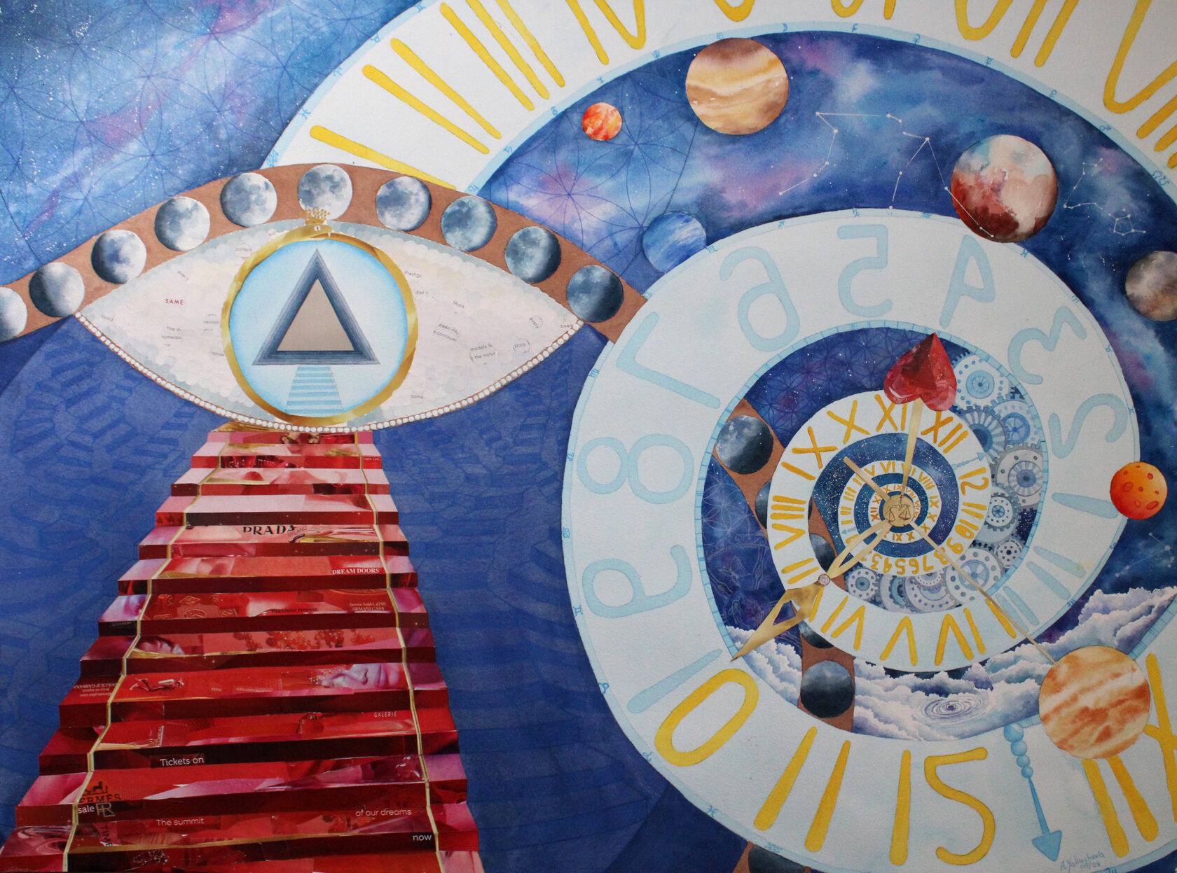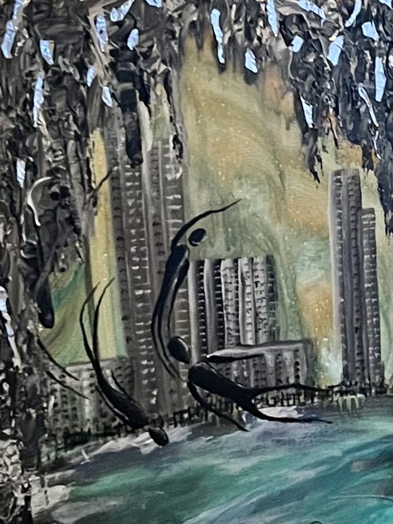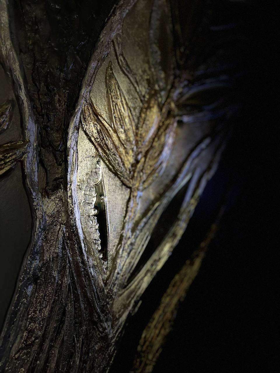 Texture paste, mosaic, acrylic paints, mirror gold leaf, natural mirrors, pure quartz, agate, epoxy resin