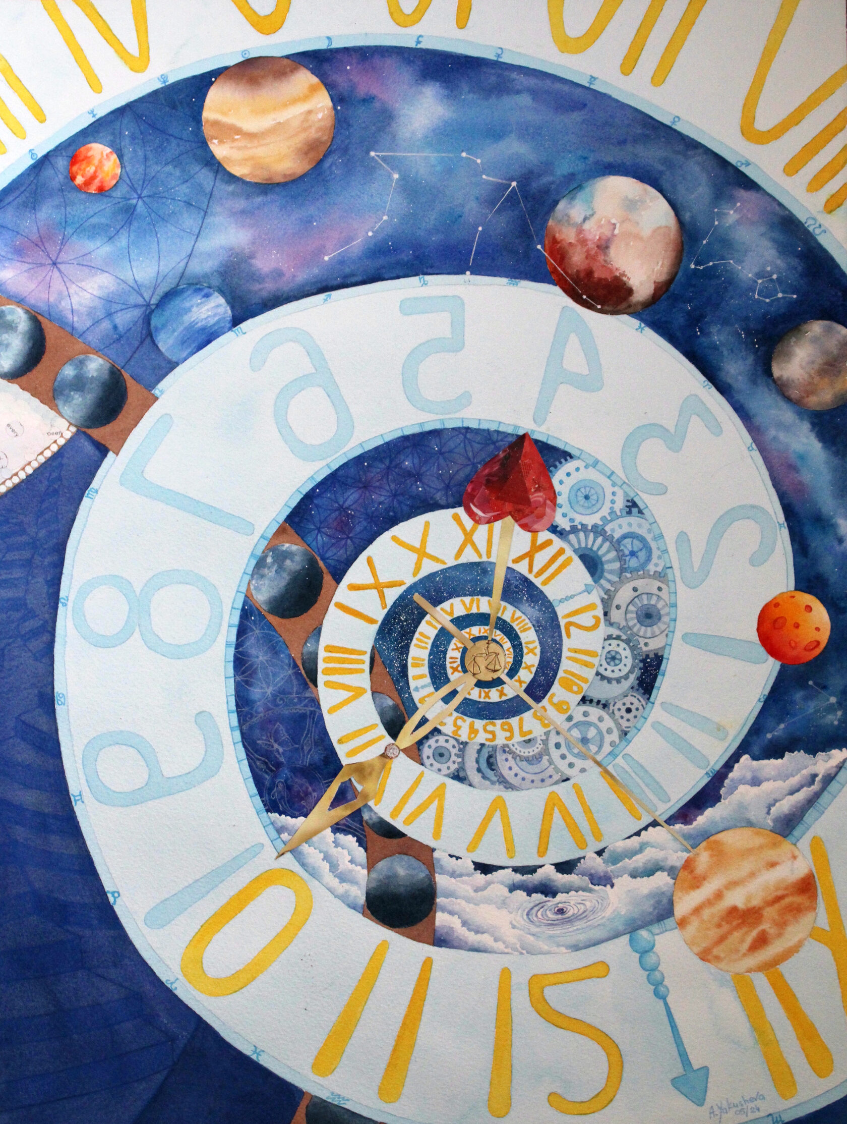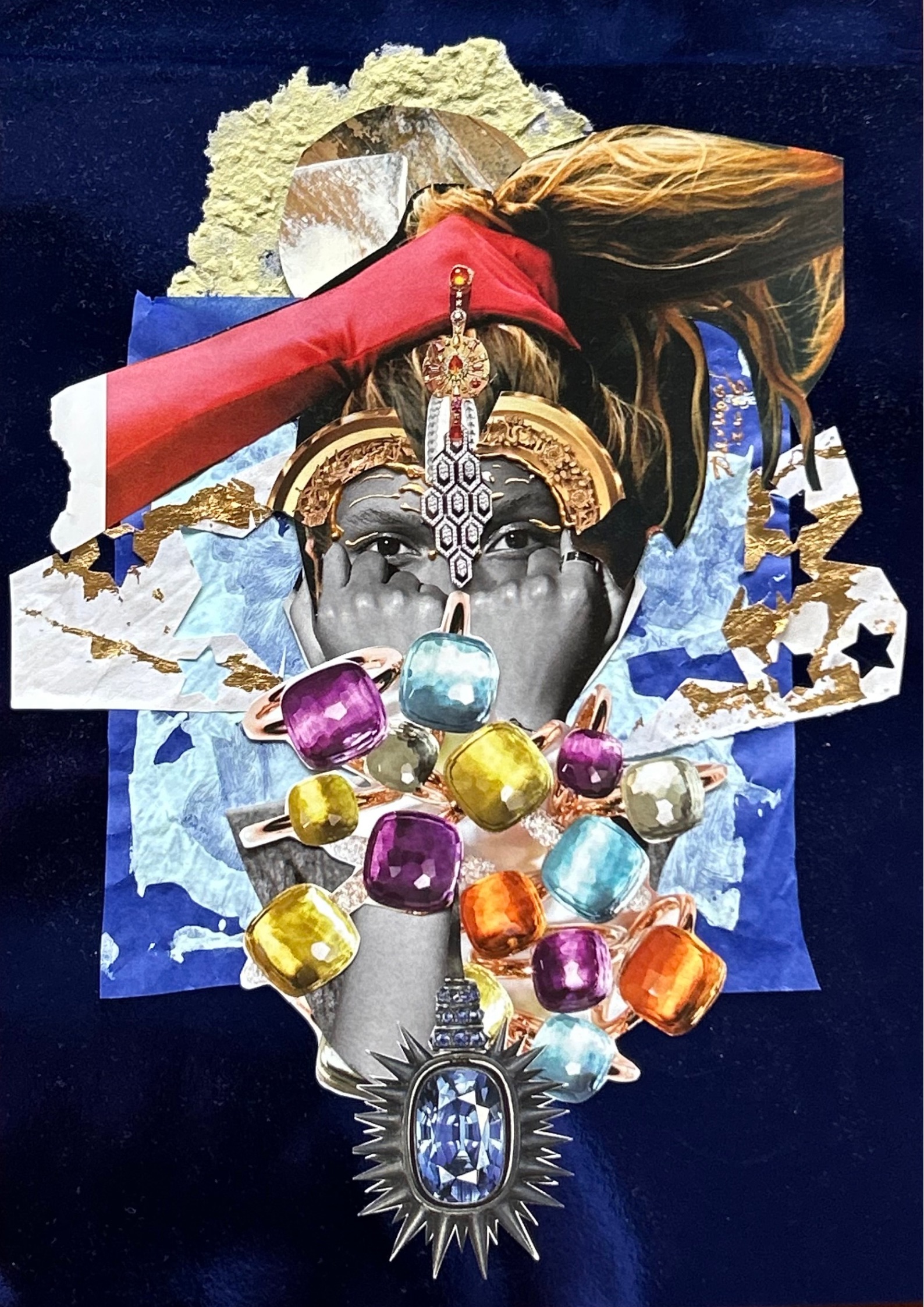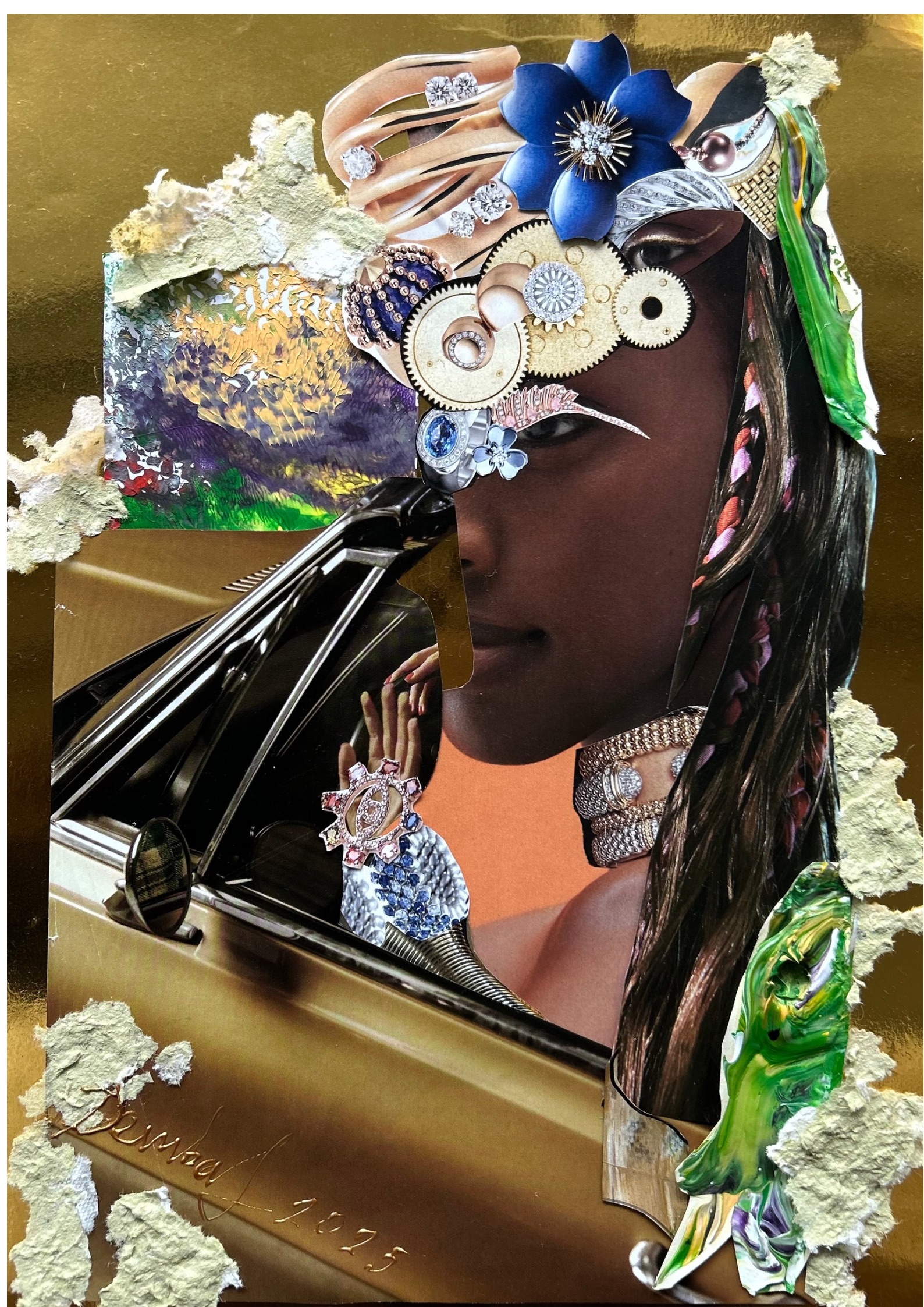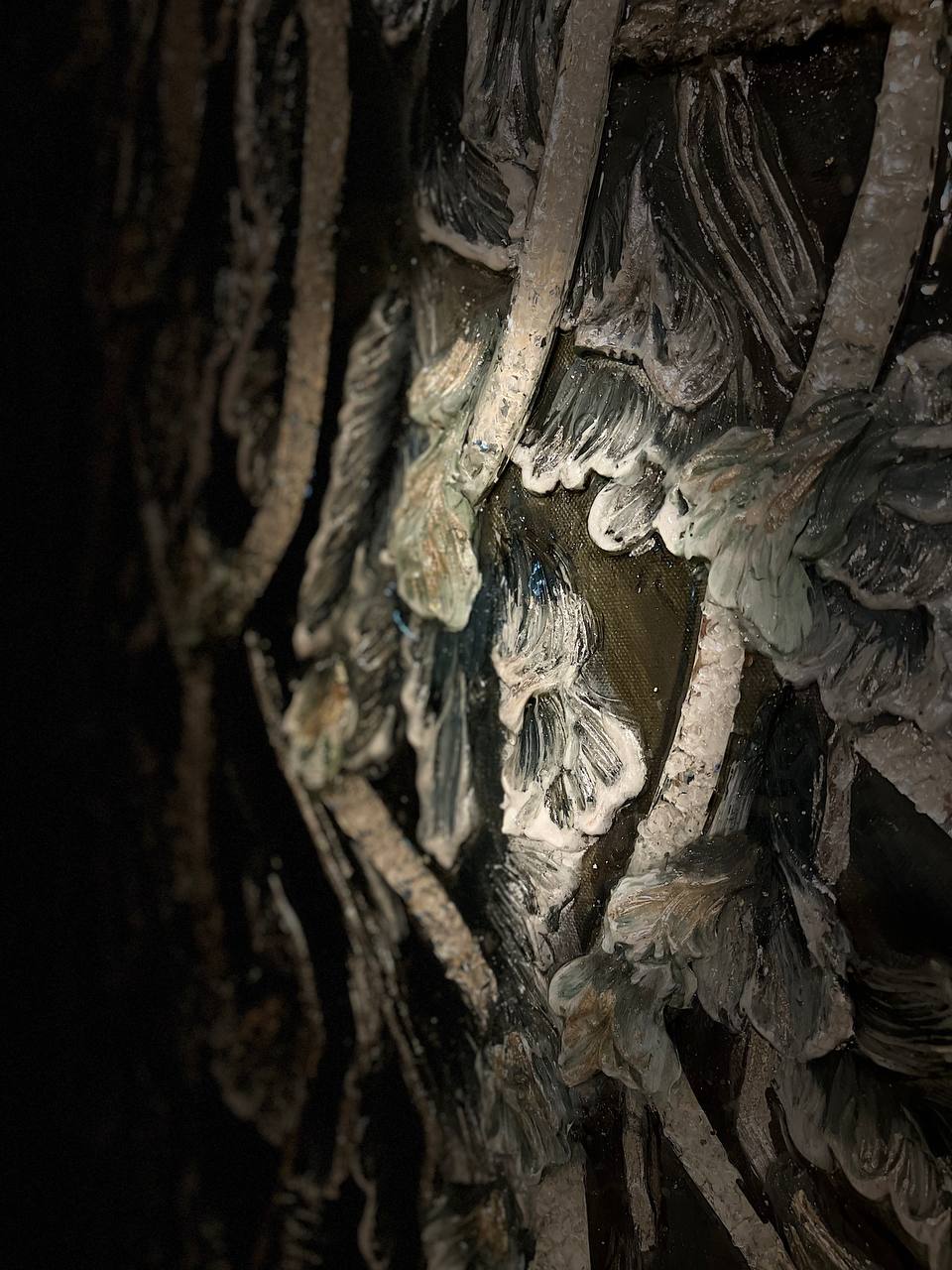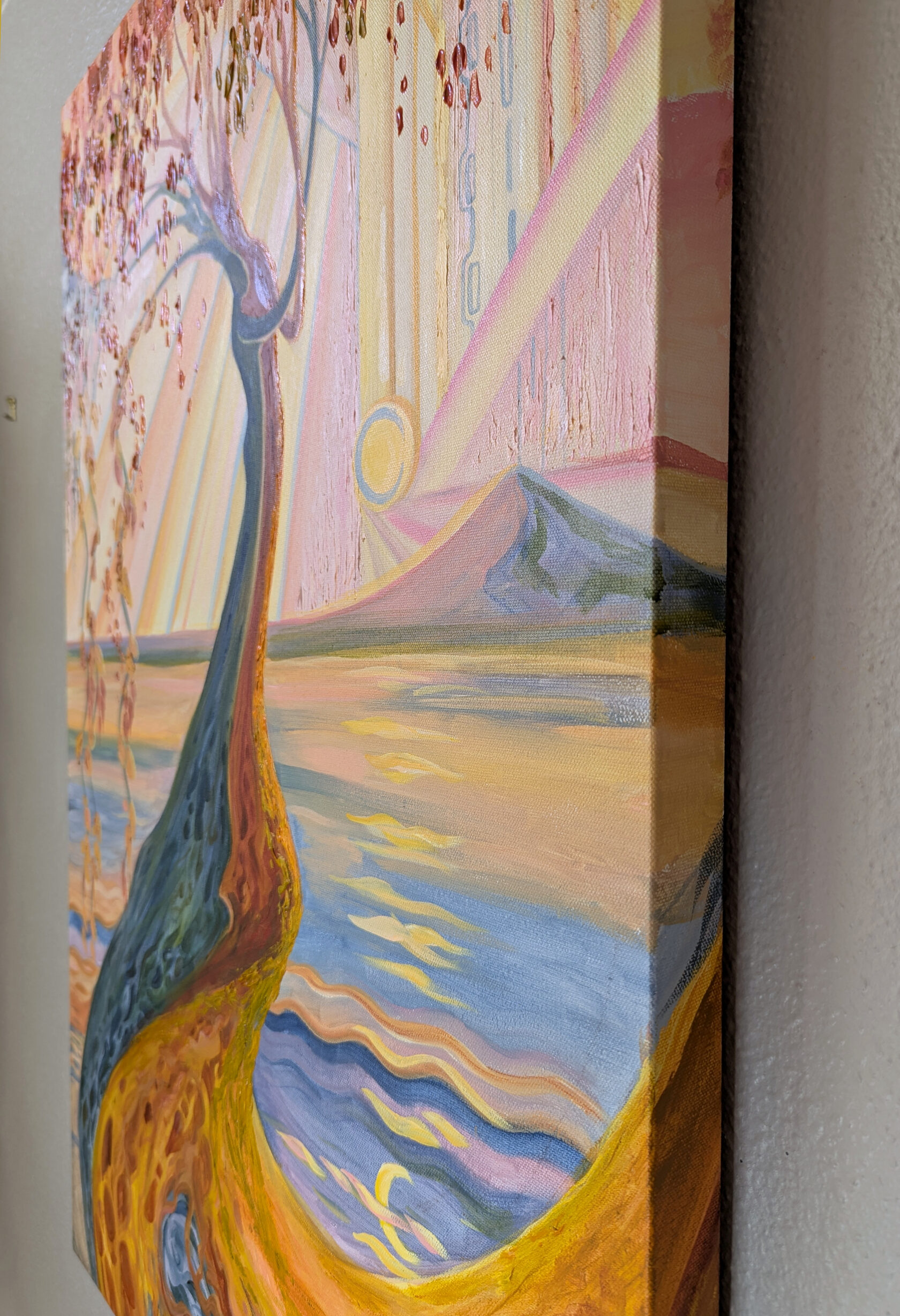 Texture paste, mosaic, acrylic paints, mirror gold leaf, natural mirrors, pure quartz, agate, epoxy resin