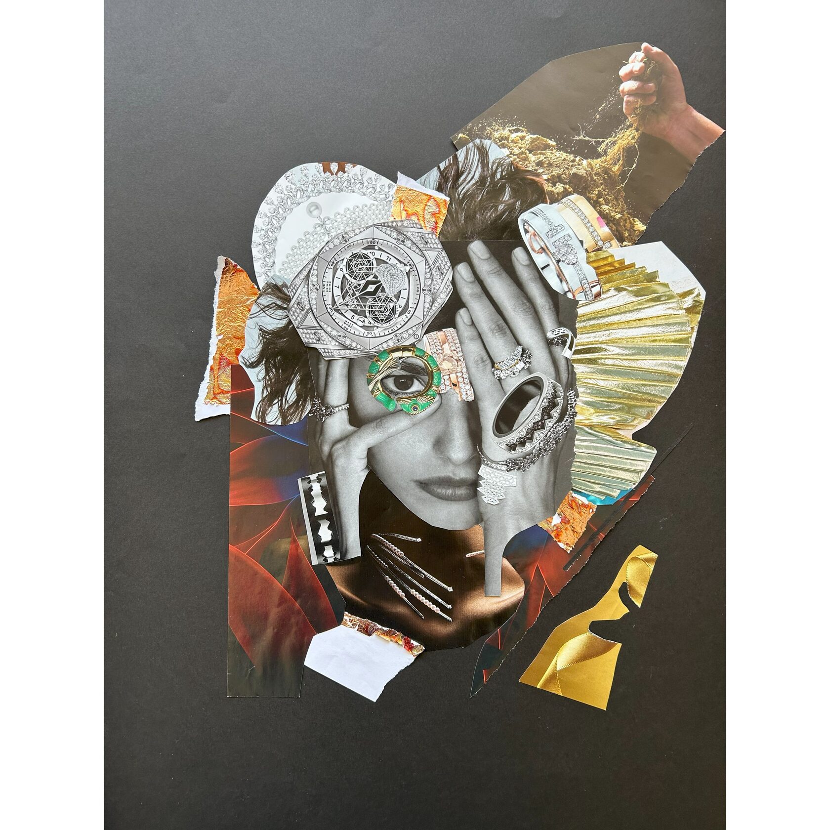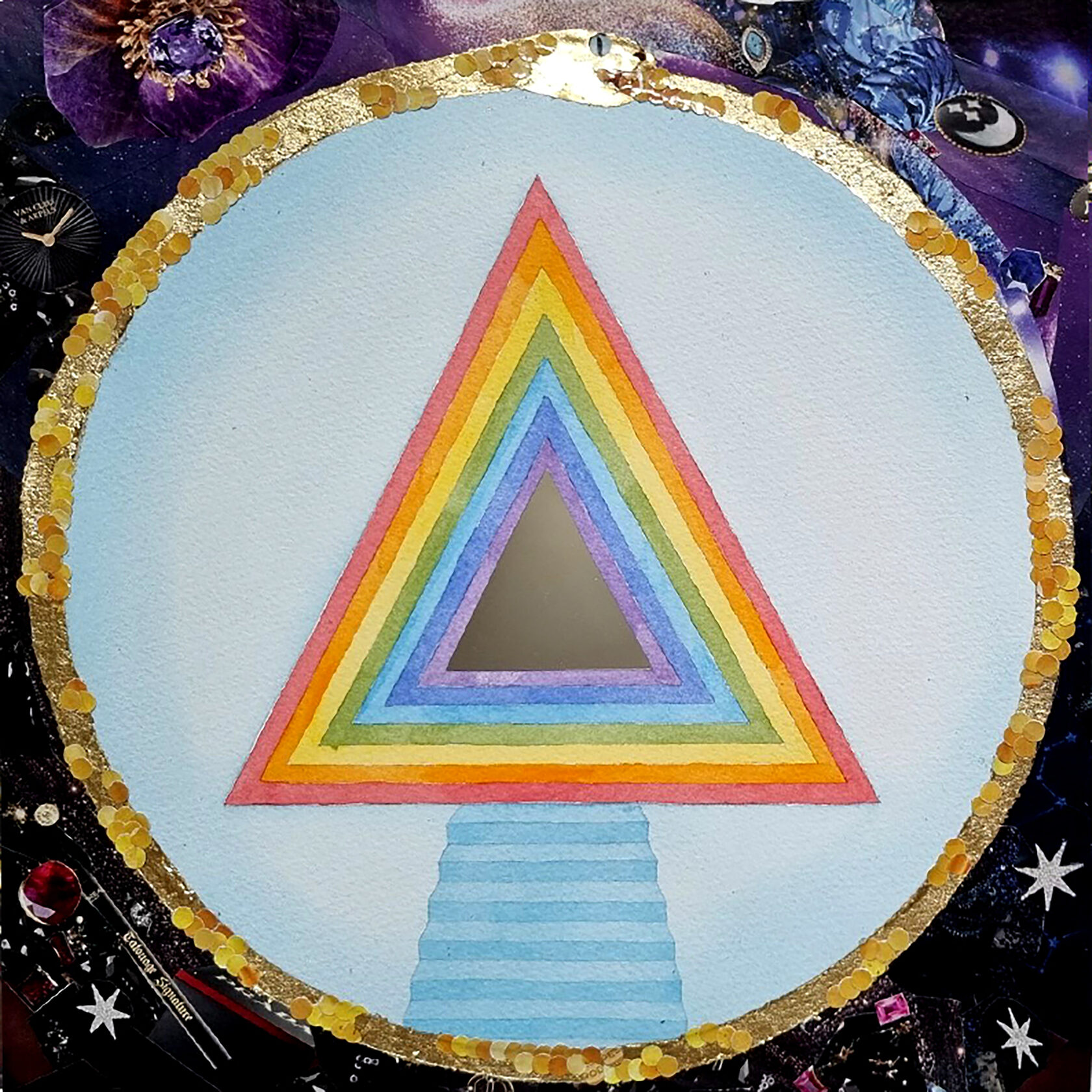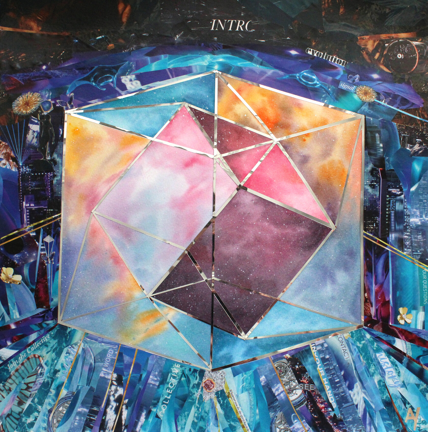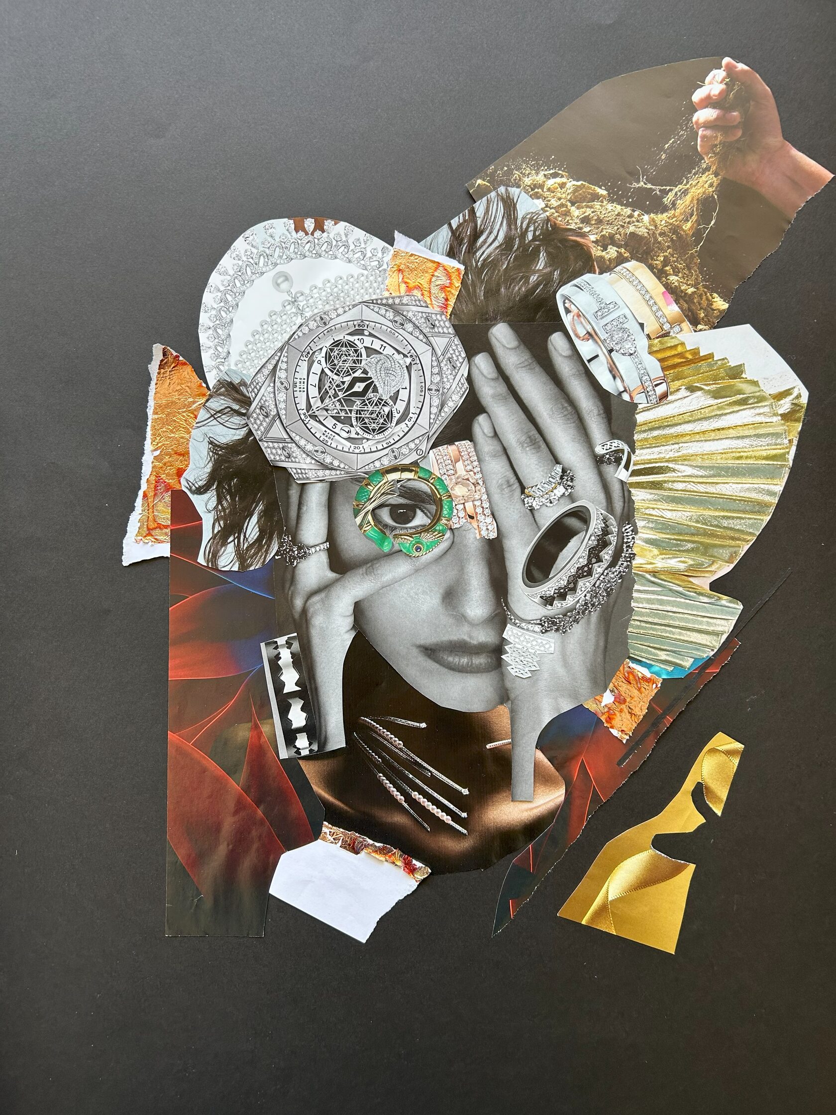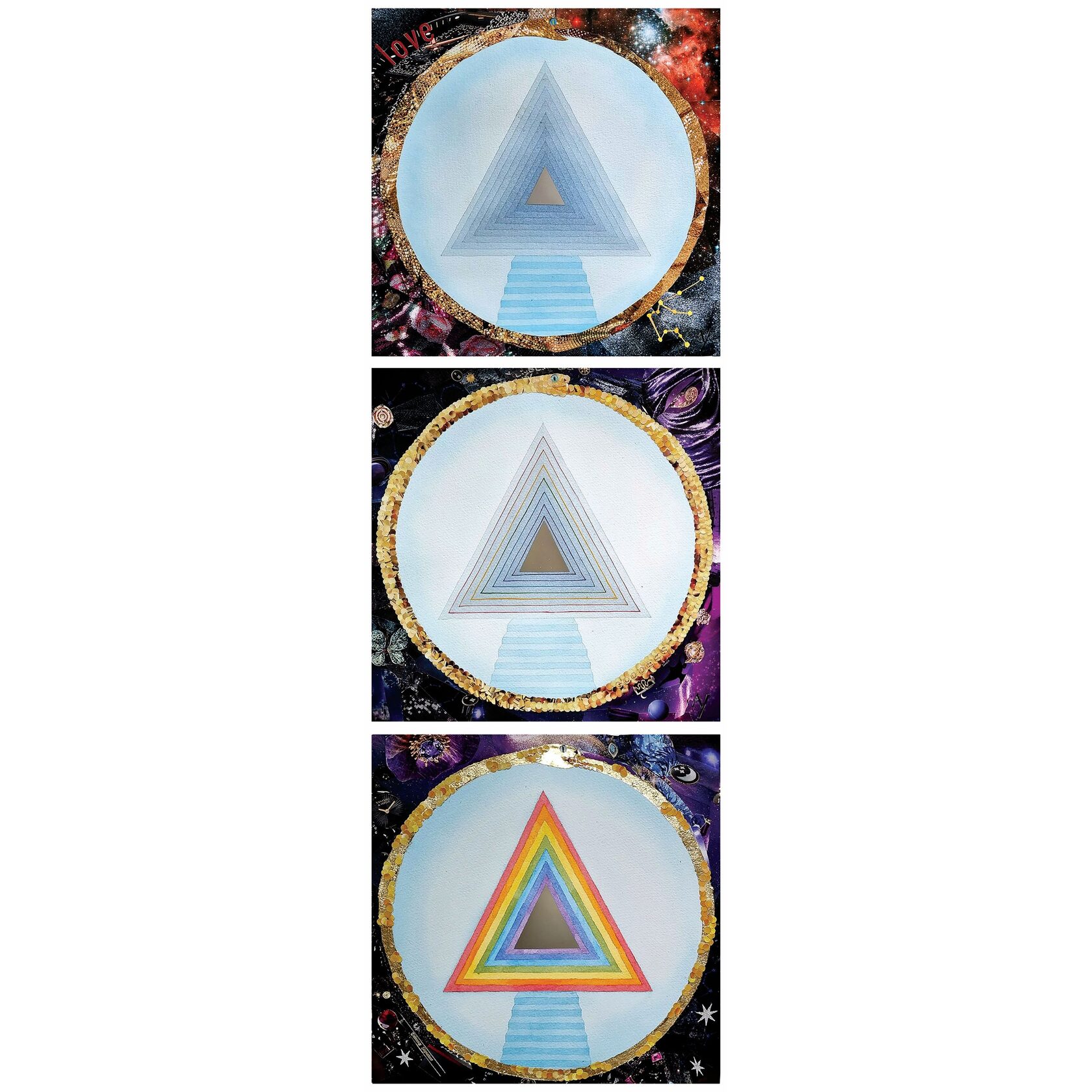 Texture paste, mosaic, acrylic paints, mirror gold leaf, natural mirrors, pure quartz, agate, epoxy resin