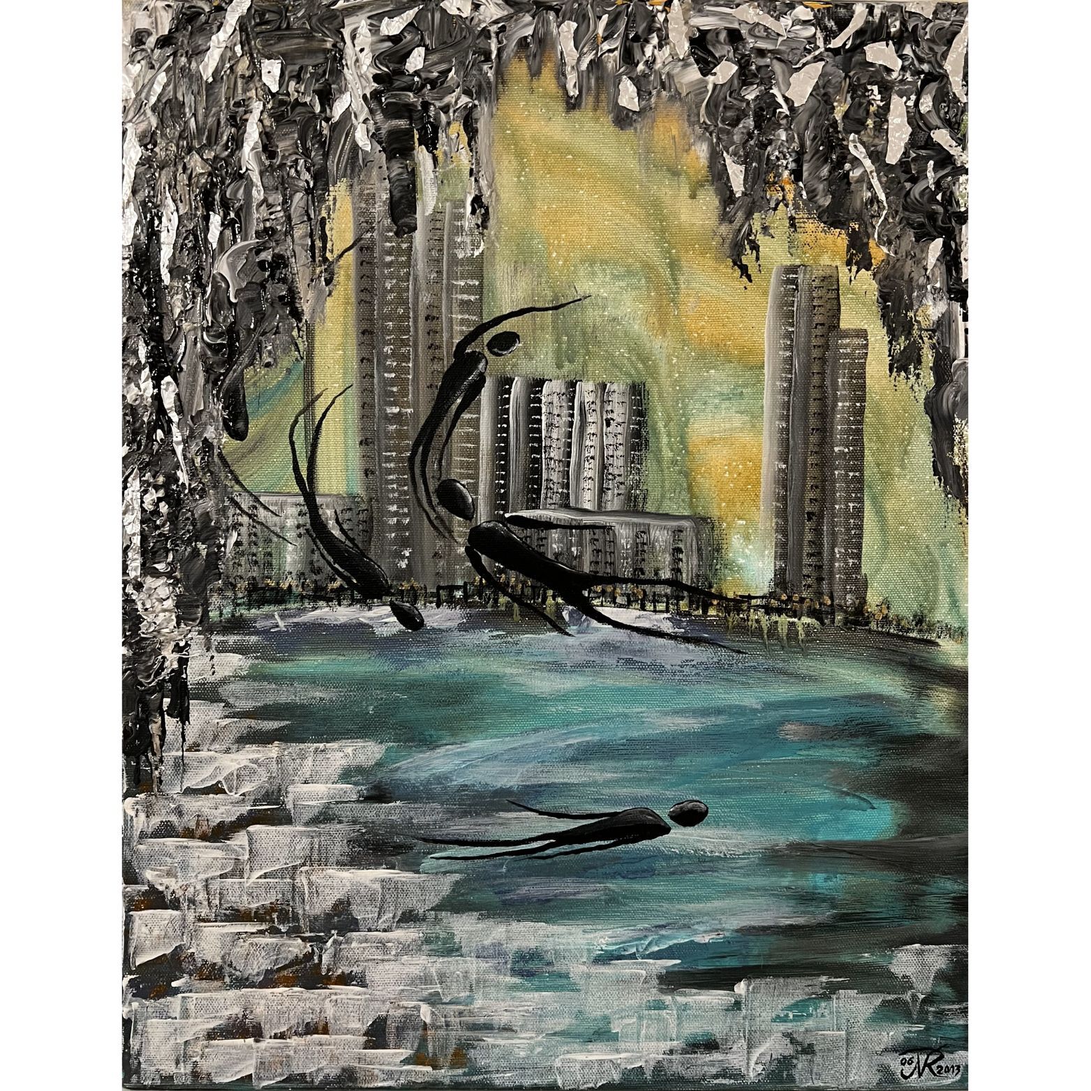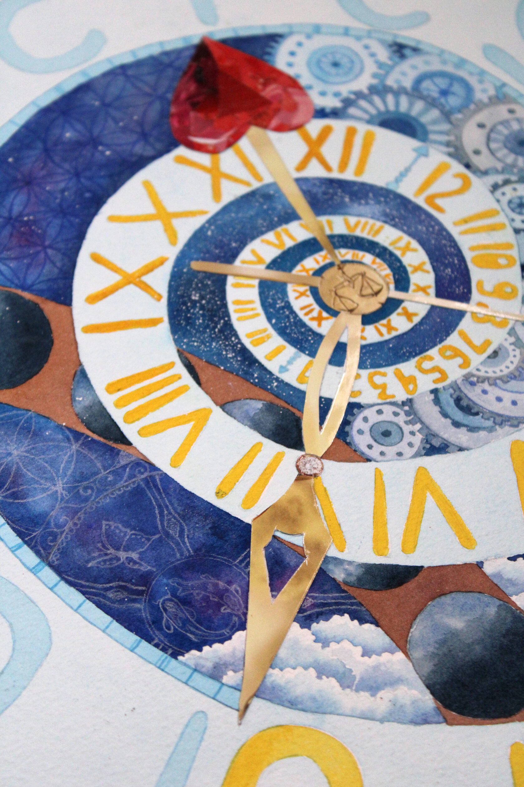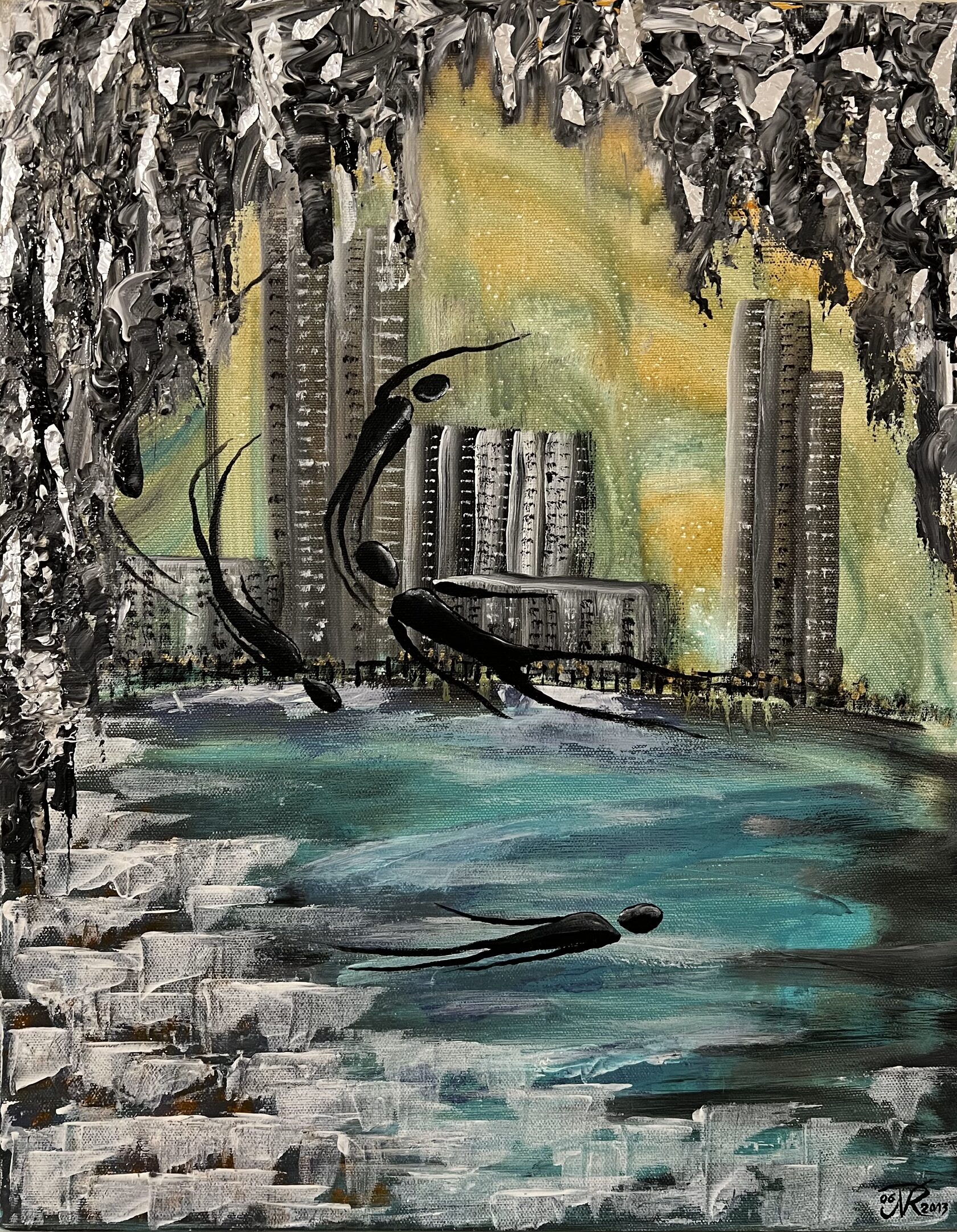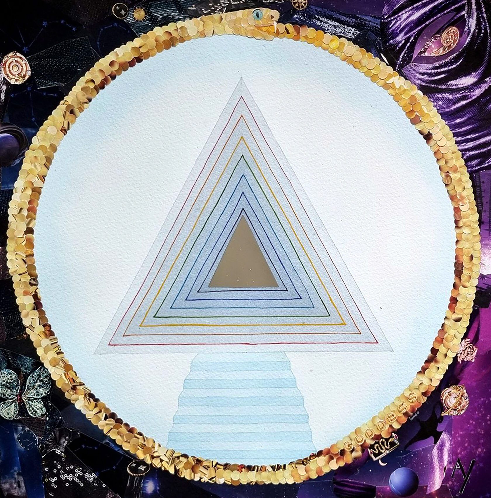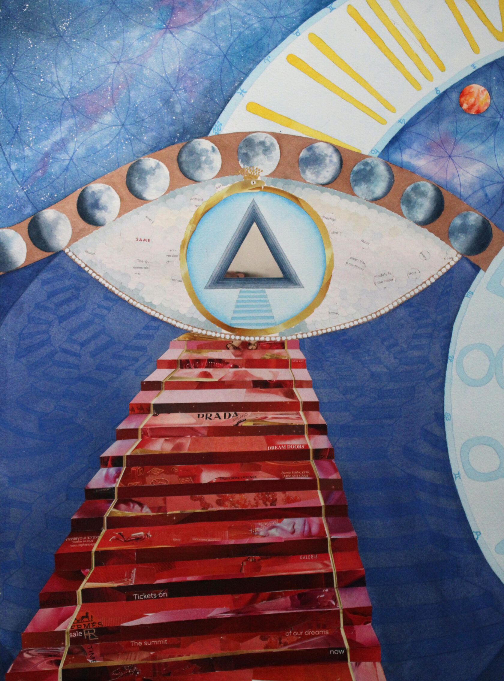 Texture paste, mosaic, acrylic paints, mirror gold leaf, natural mirrors, pure quartz, agate, epoxy resin