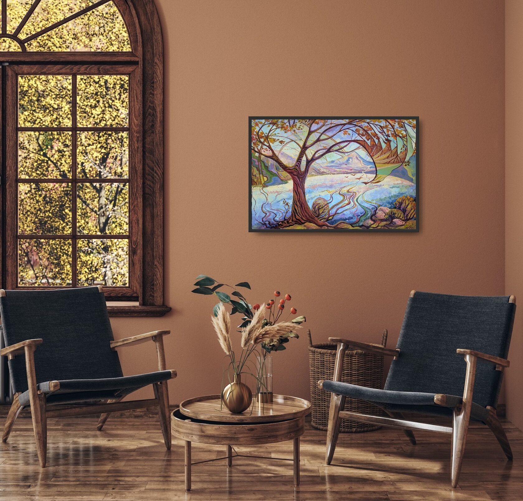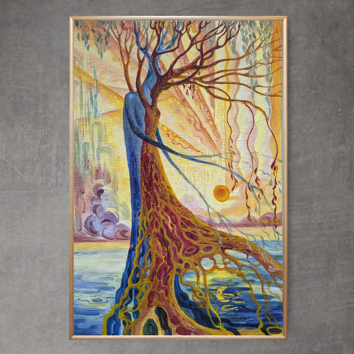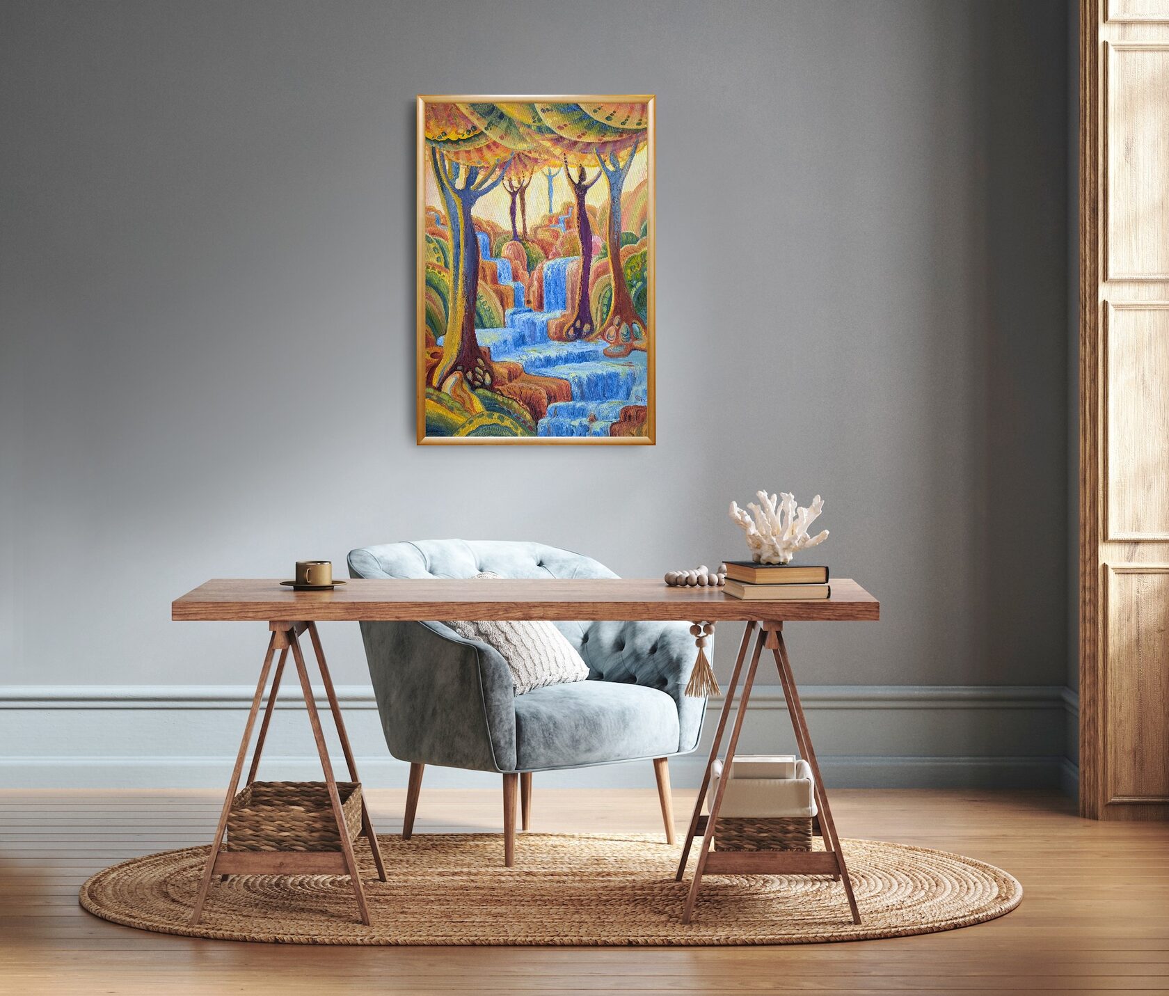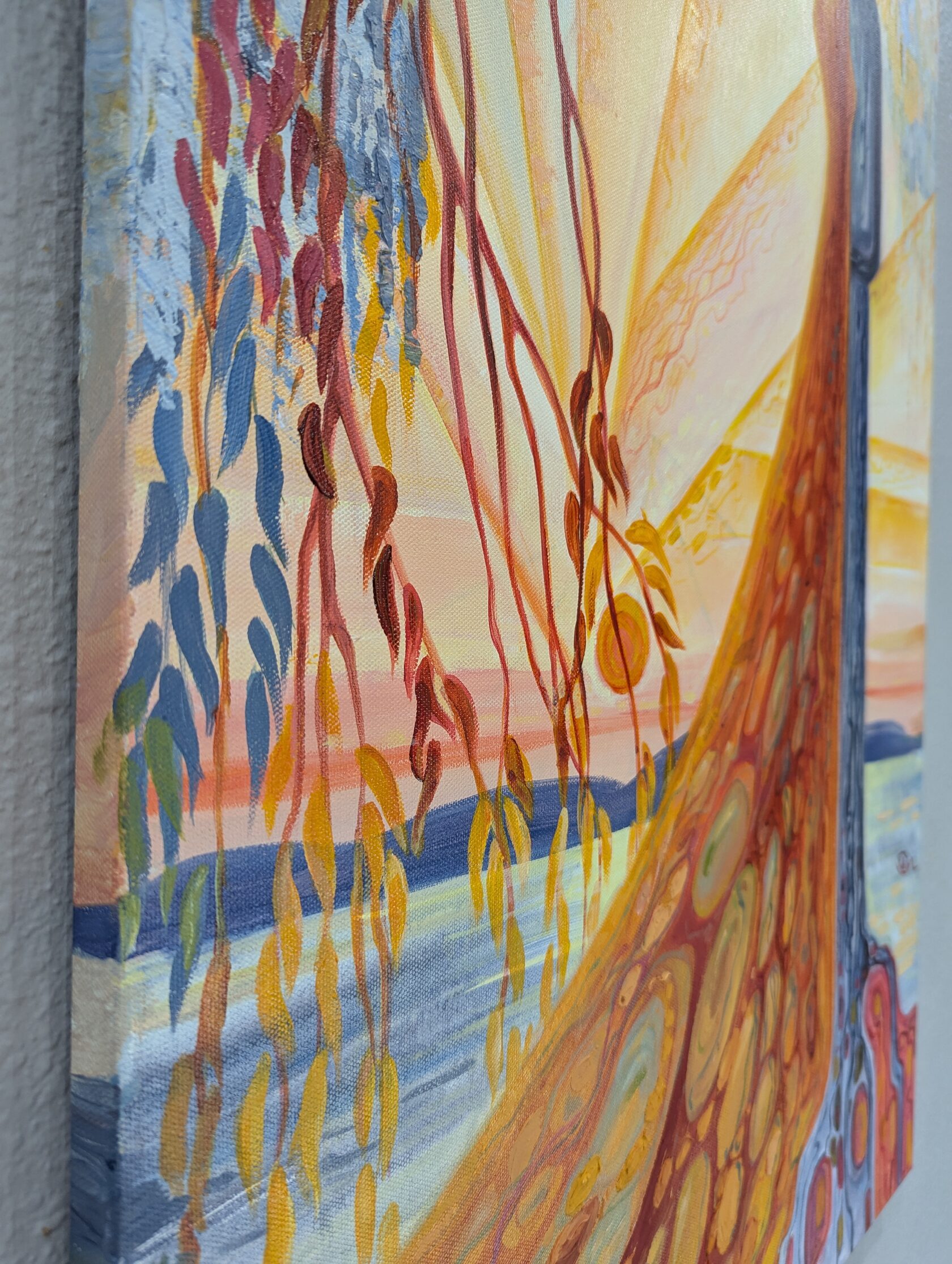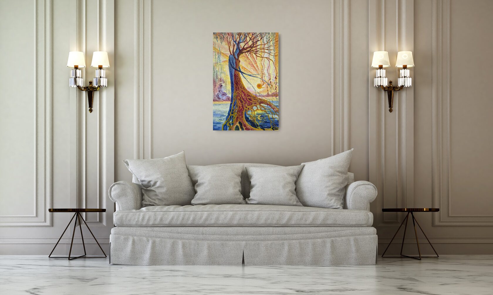 Texture paste, mosaic, acrylic paints, mirror gold leaf, natural mirrors, pure quartz, agate, epoxy resin
