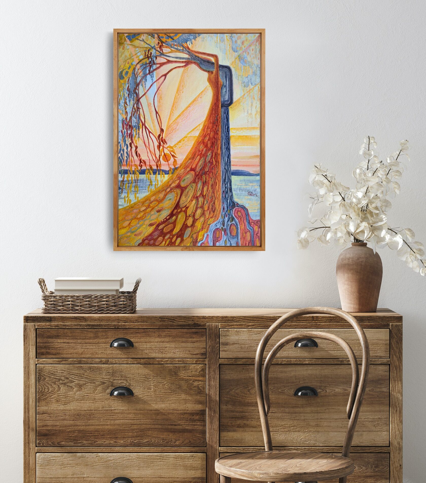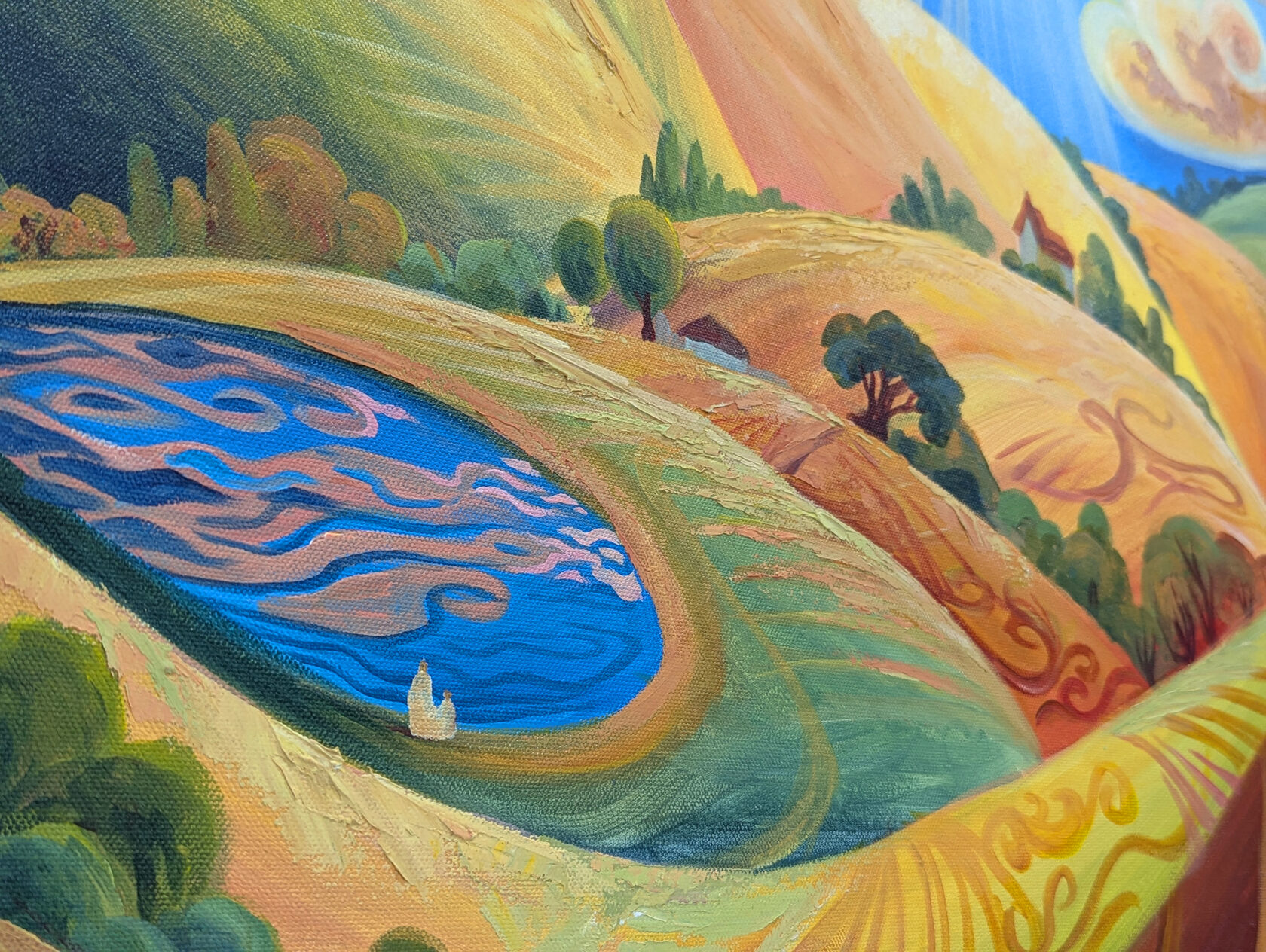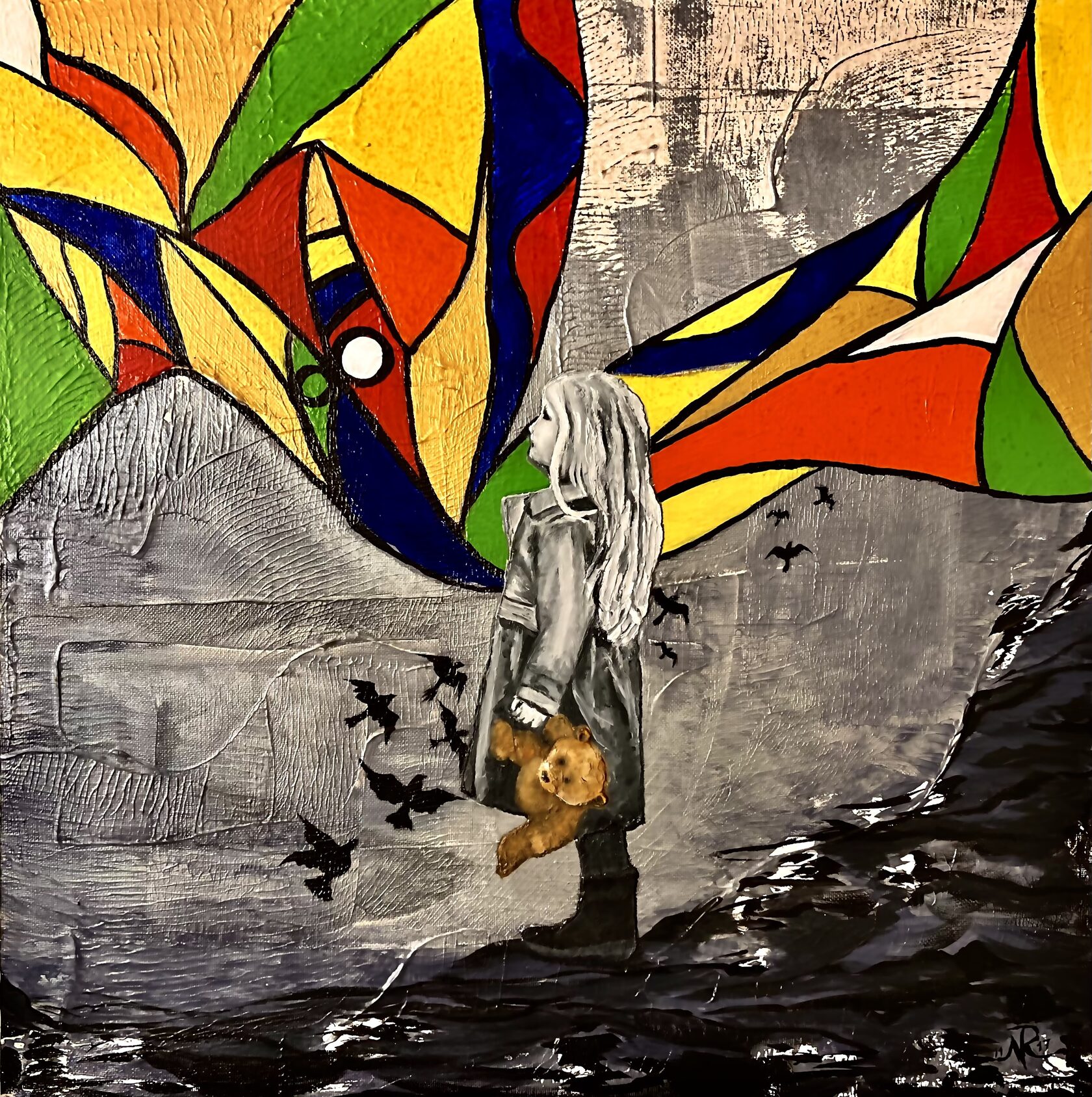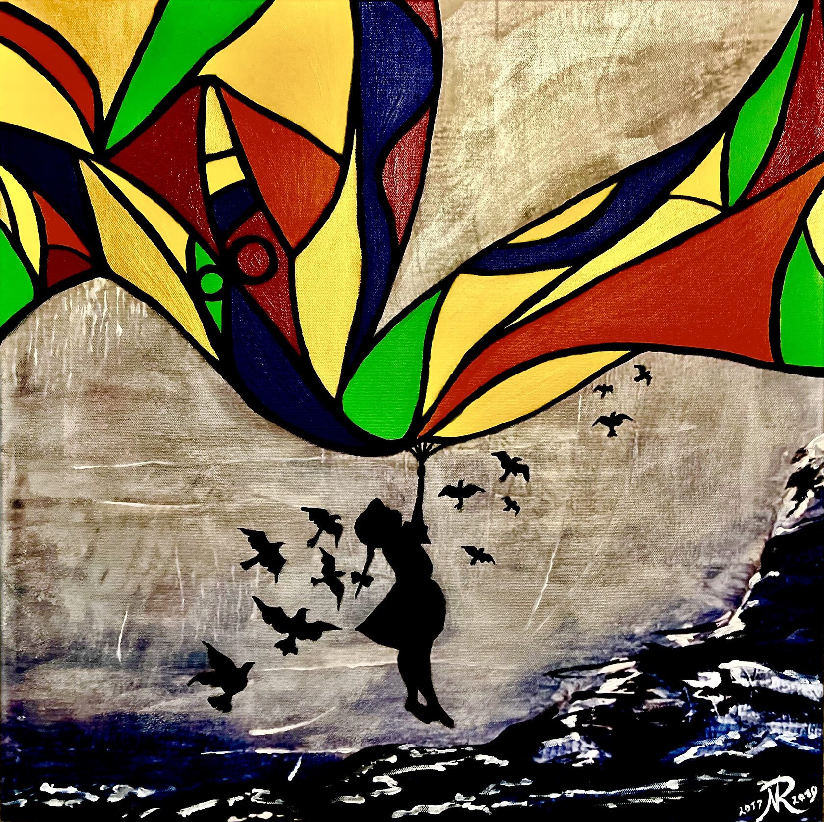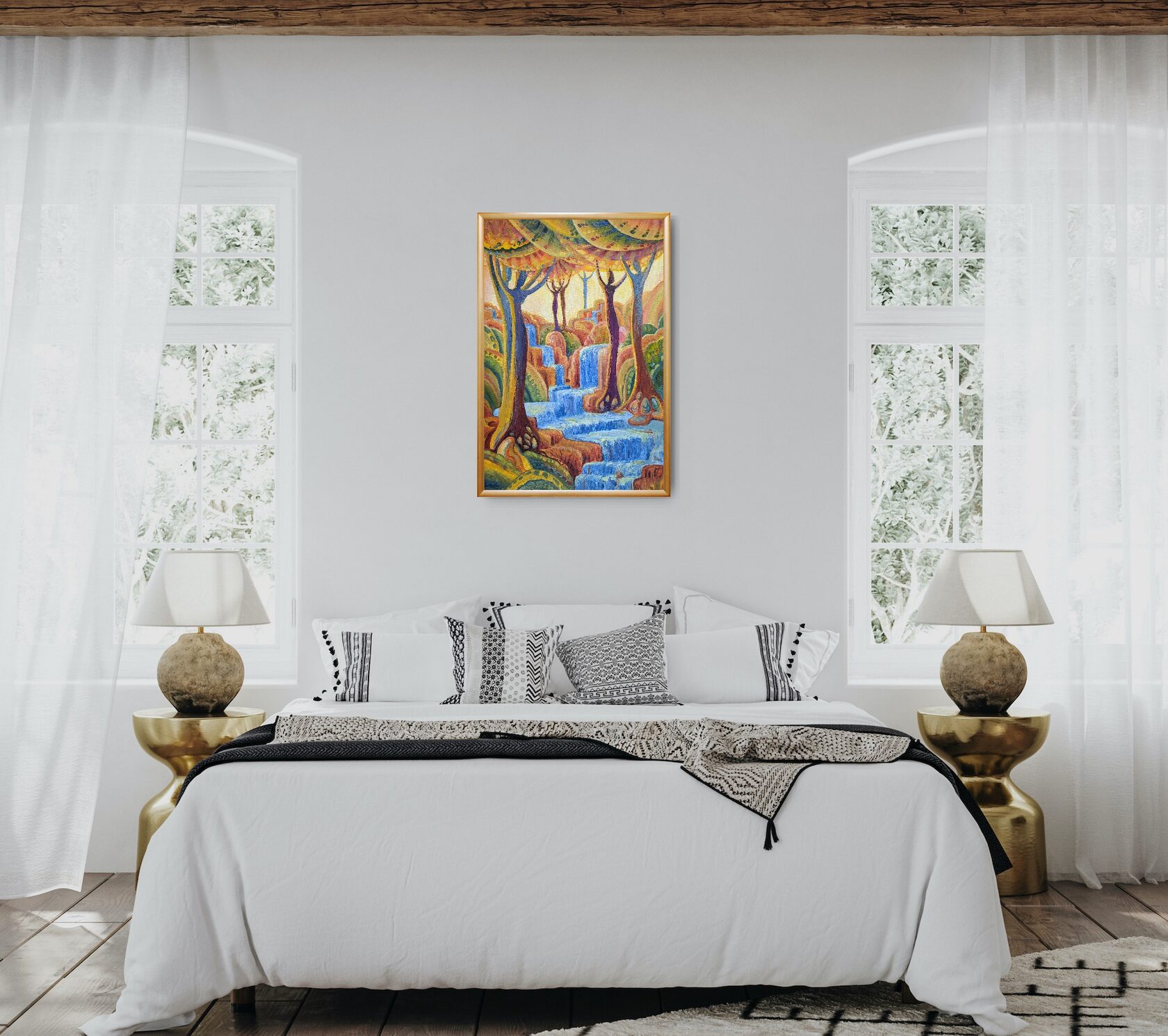 Texture paste, mosaic, acrylic paints, mirror gold leaf, natural mirrors, pure quartz, agate, epoxy resin